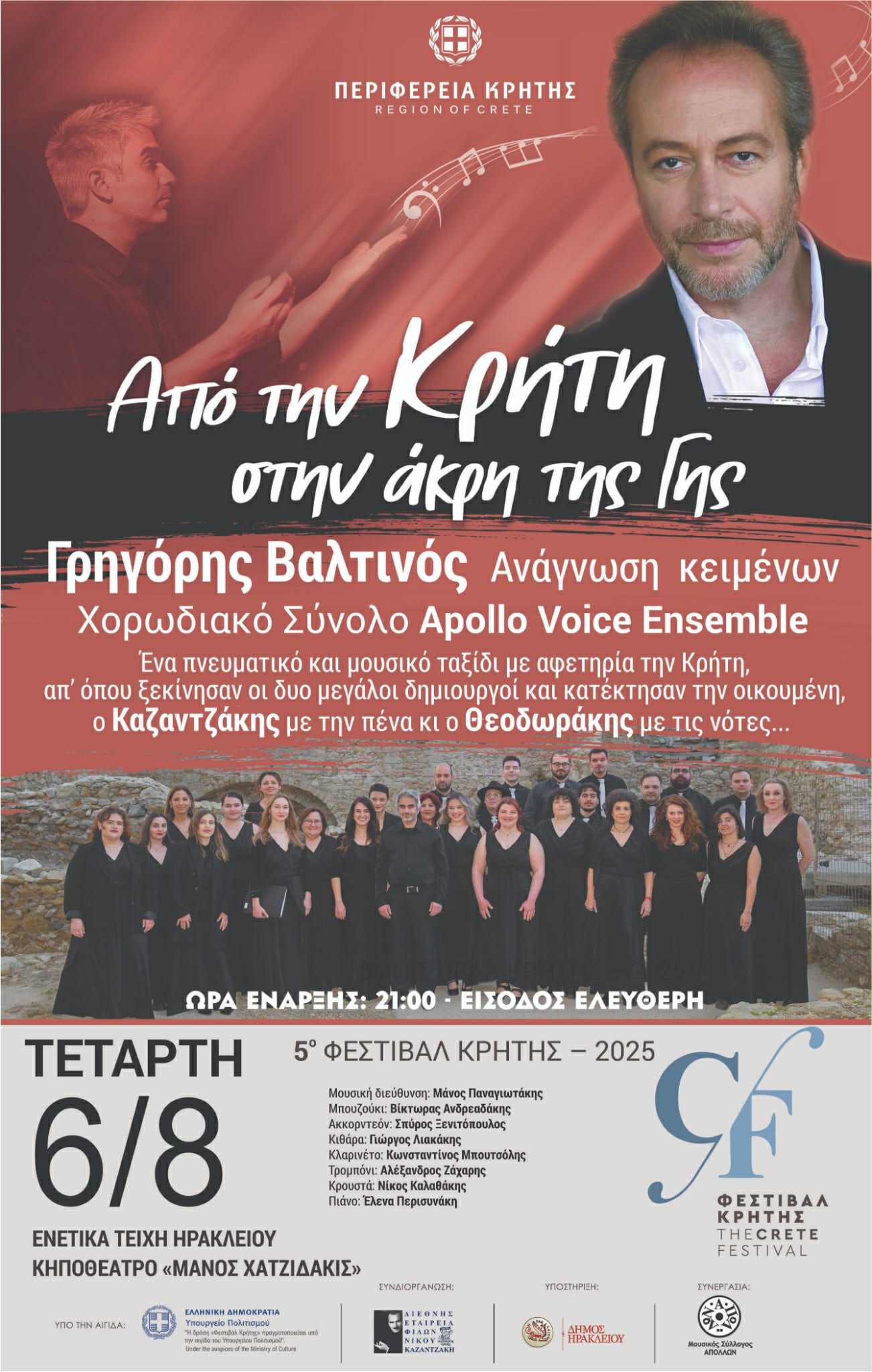 Μουσική εκδήλωση «Από την Κρήτη στην άκρη της Γης», στο πλαίσιο του 5ου Φεστιβάλ της Περιφέρειας Κρήτης με ελεύθερη είσοδο