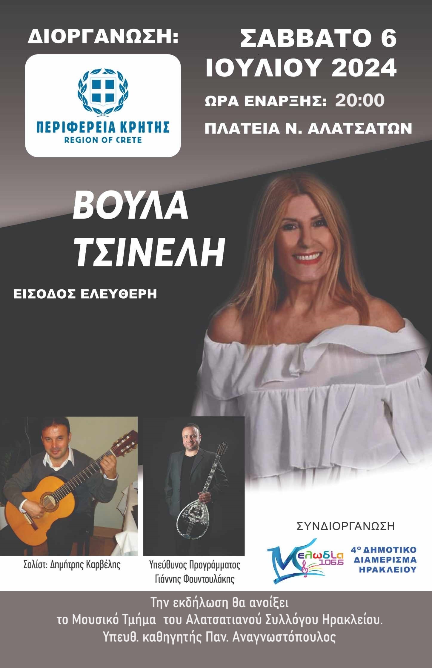 Μια βραδιά με μικρασιάτικα, έντεχνα, ελαφρολαικα και λαϊκά τραγούδια με την Βούλα Τσινέλη.