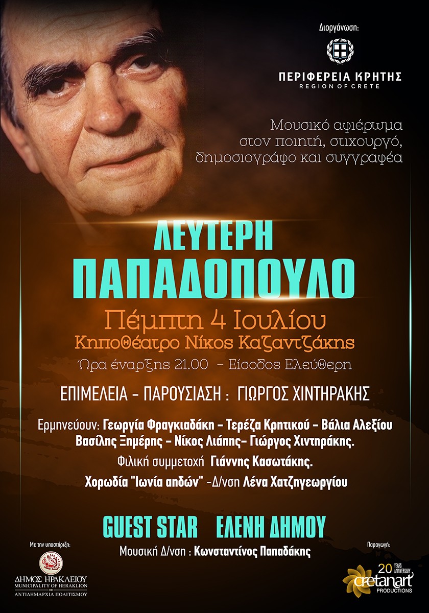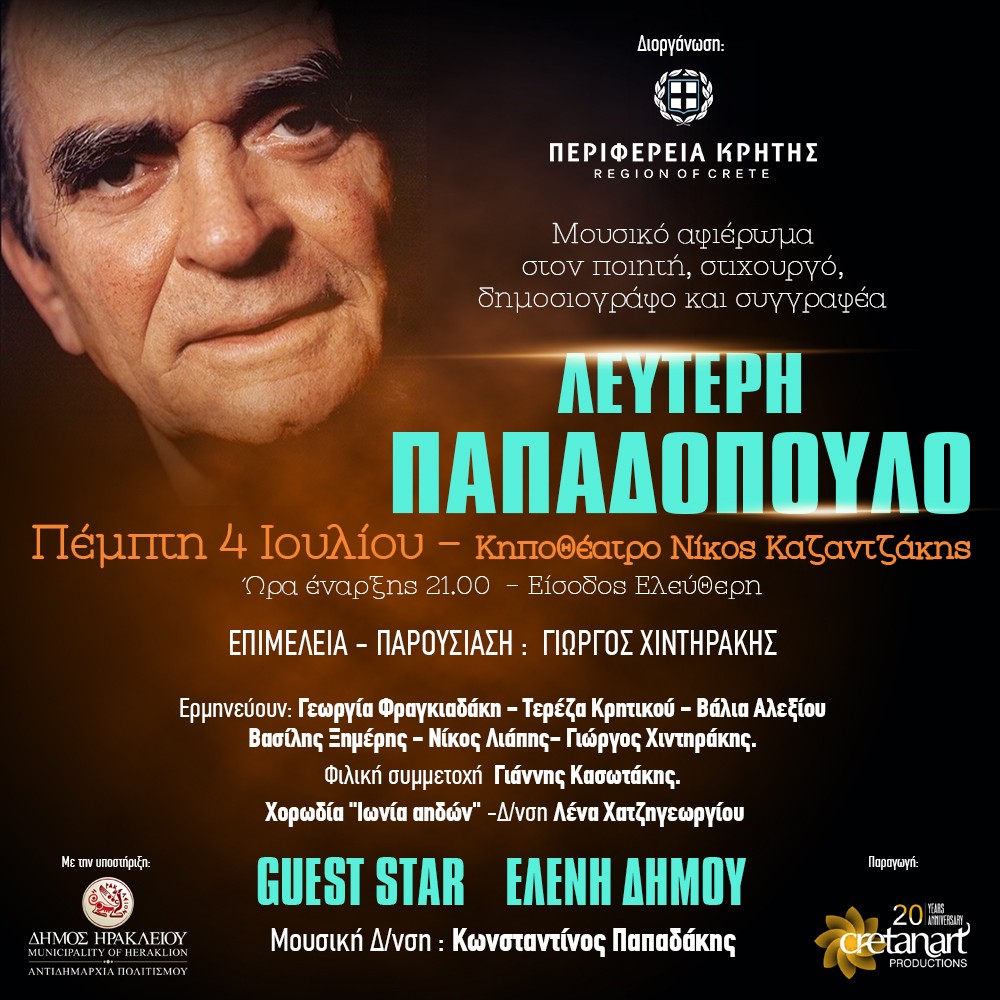 Μουσικό αφιέρωμα στον Λευτέρη Παπαδόπουλο με την διοργάνωση της Περιφέρειας Κρήτης