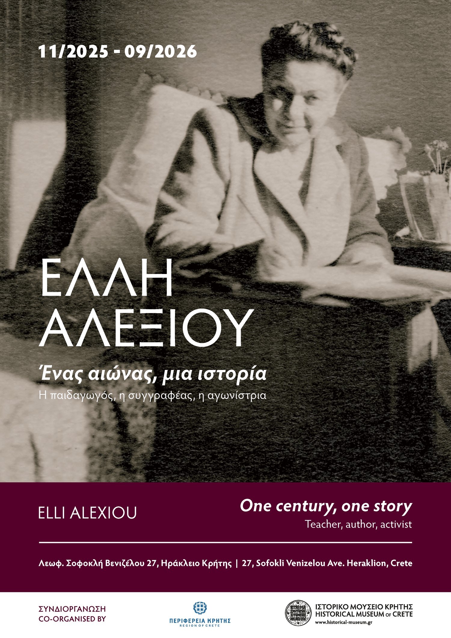 Παραγωγή της σταθερής και επιτυχημένης συνεργασίας της Εταιρίας Κρητικών Ιστορικών Μελετών και της Περιφέρειας Κρήτης, η έκθεση θα εγκαινιαστεί την Τετάρτη 12 Νοεμβρίου 2025, ώρα 7:00μ.μ..
