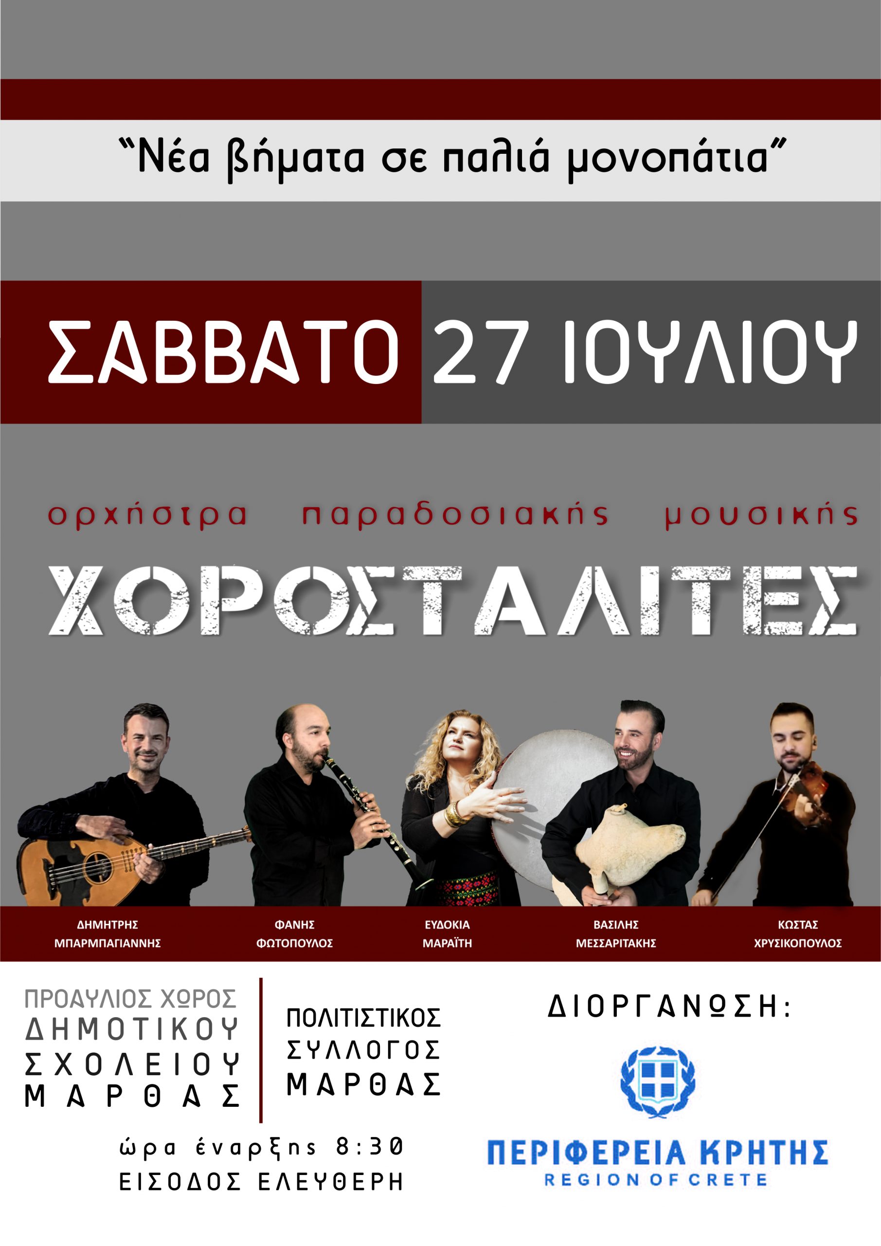 Οι «Χοροσταλίτες» παρουσιάζουν δύο συναυλίες με τίτλο «Νέα βήματα σε παλιά μονοπάτια» και με τη στήριξη της Περιφέρειας Κρήτης και ελεύθερη είσοδο.
