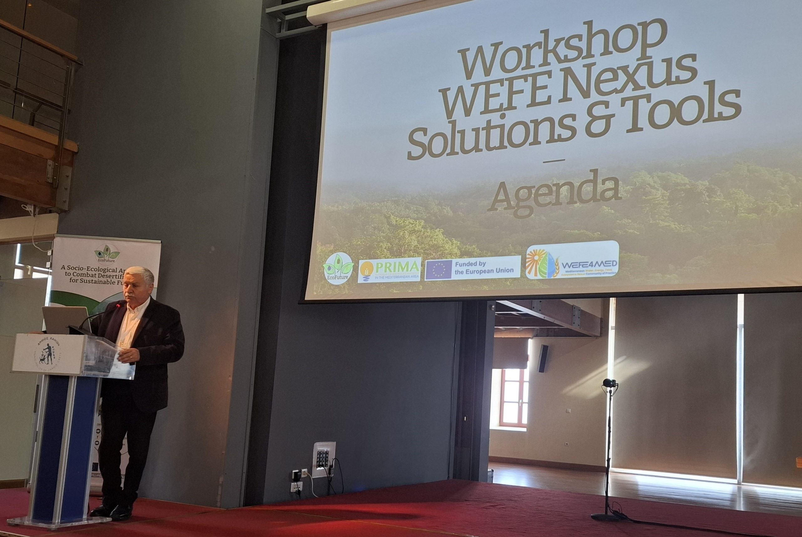 Ο Αντιπεριφερειάρχης επισήμανε ότι η πολιτική της Περιφέρειας Κρήτης ενσωματώνει ενεργά την ενίσχυση του Nexus Νερού–Ενέργειας–Διατροφής–Οικοσυστημάτων, προάγοντας την αποδοτική χρήση των πόρων και την πράσινη μετάβαση.