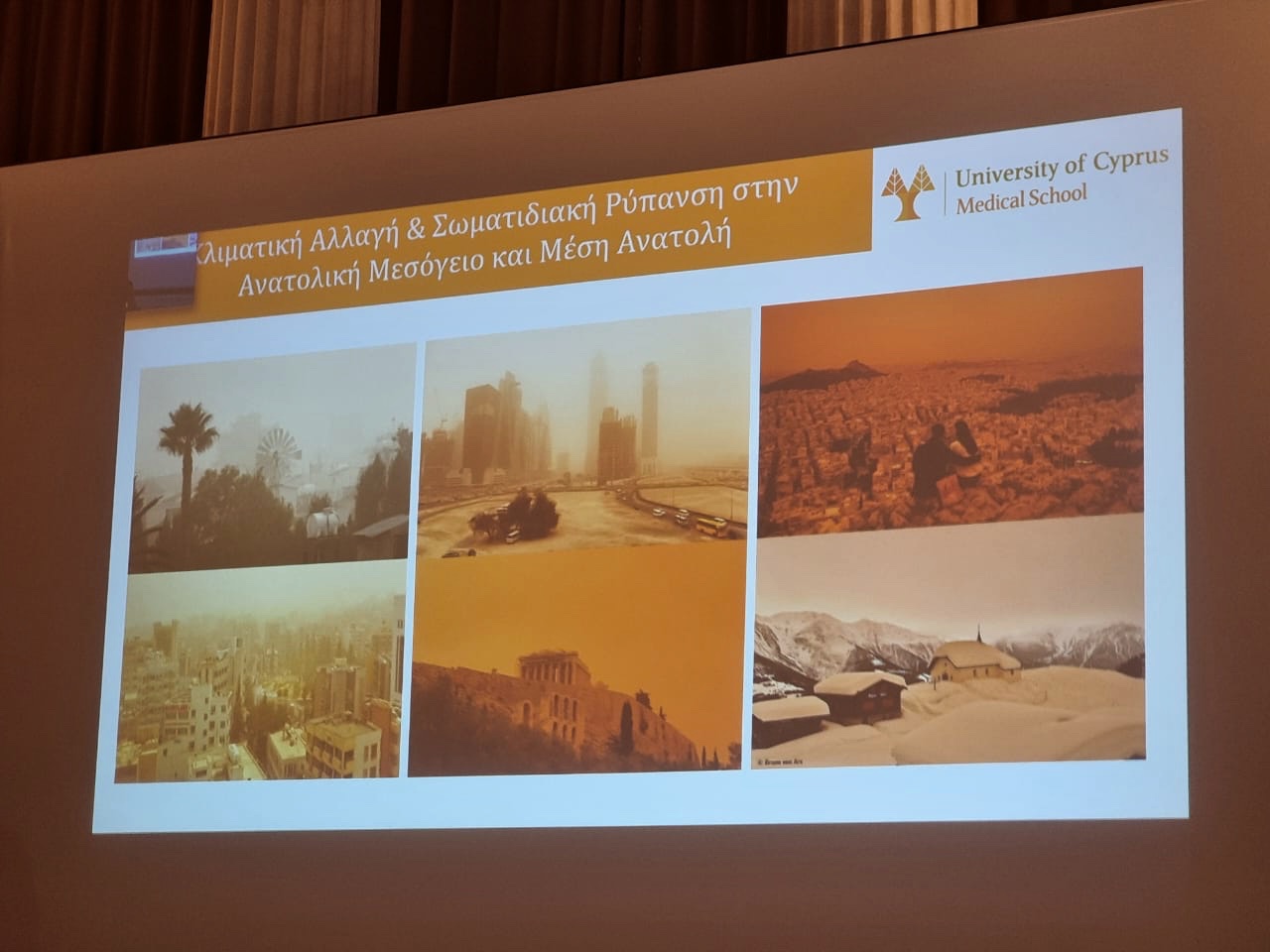 Η ημερίδα φιλοξένησε σημαντικές παρεμβάσεις. Ο Πέτρος Κουτράκης και η Kari Nadeau από το Harvard Chan School παρουσίασαν επιστημονικά δεδομένα για τη σύνδεση κλιματικής αλλαγής και υγείας. Ο Παναγιώτης Γιάλλουρος (Πανεπιστήμιο Κύπρου) ανέλυσε τις καταιγίδες σκόνης της Ανατολικής Μεσογείου και τις επιπτώσεις τους. Η Σεβαστή Χατζοπούλου μίλησε για την ανάγκη πολιτικών λύσεων βασισμένων στην επιστήμη στον αγροδιατροφικό τομέα. Η Φαίη Ορφανίδου παρουσίασε το παράδειγμα του Λεμονοδάσους Πόρου ως πρότυπο βιωσιμότητας. Ο Χρήστος Παπαδημητρίου (Columbia University) αναφέρθηκε στην τεχνητή νοημοσύνη και την κλιματική αλλαγή.