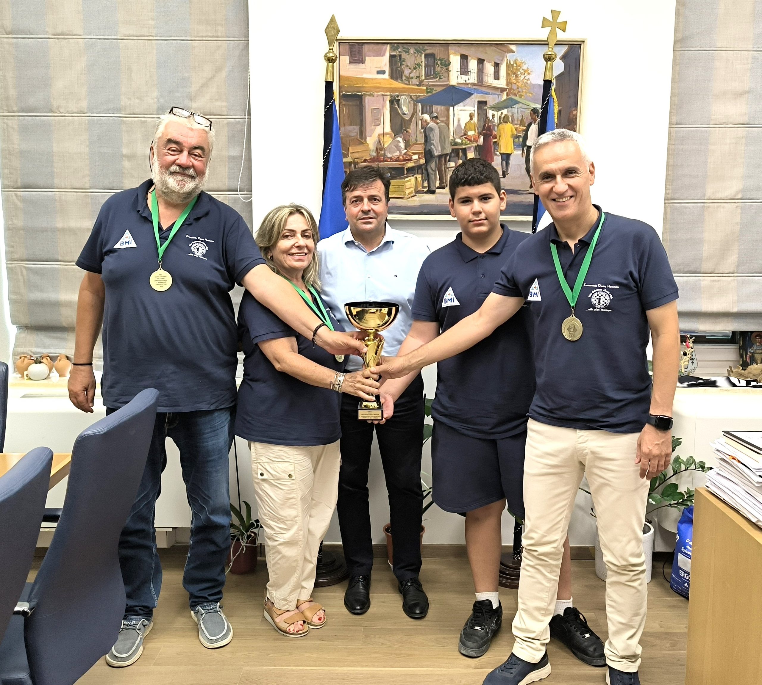Ο Πρόεδρος του Σκακιστικού Ομίλου Ηρακλείου Νίκος Παπανδρέου επισκέφθηκε σήμερα τον Αντιπεριφερειάρχη Ηρακλείου Νίκο Συριγωνάκη. Ο κ. Παπανδρέου συνοδευόμενος από την Γ.Γ. Μαίρη Βασιλακάκη, τον τεχνικό διευθυντή Ζαχαρία Καλαϊτζάκη και το μέλος Αντώνη Καλαιτζάκη, με αφορμή την κατάκτηση της πρώτης θέσης που έλαβε ο όμιλος στο Πανελλήνιο Πρωτάθλημα, ευχαρίστησε για την διαχρονική στήριξη της Περιφέρειας Κρήτης.