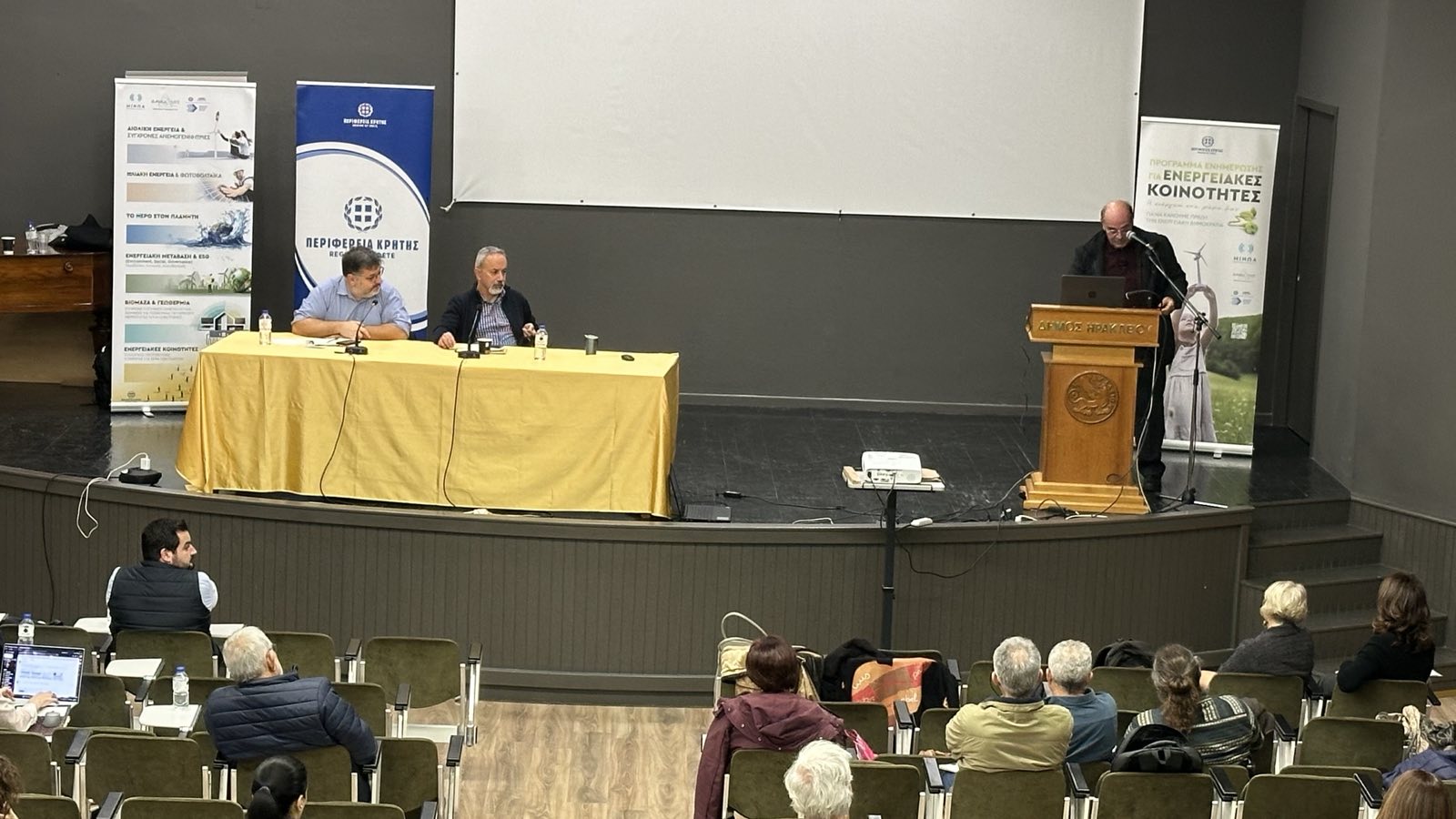 Ενημερωτική ημερίδα πραγματοποιήθηκε το Σάββατο 14 Δεκεμβρίου με θέμα: «Οι ενεργειακές προοπτικές στην Κρήτη και οι επιπτώσεις τους στο φυσικό και κοινωνικό περιβάλλον». Μια υβριδική εκδήλωση με συμμετοχή πλήθους πολιτών, που   συνδιοργάνωσαν το Κέντρο Εκπαίδευσης για το Περιβάλλον και την Αειφορία (Κ.Ε.ΠΕ.Α.) Αρχανών, η Περιφέρεια Κρήτης, η ΜΙΝΩΑ Ενεργειακή Κοινότητα, με την υποστήριξη και του Αναπτυξιακού Οργανισμού ΔΑΙΔΑΛΟΣ Α.Ε.