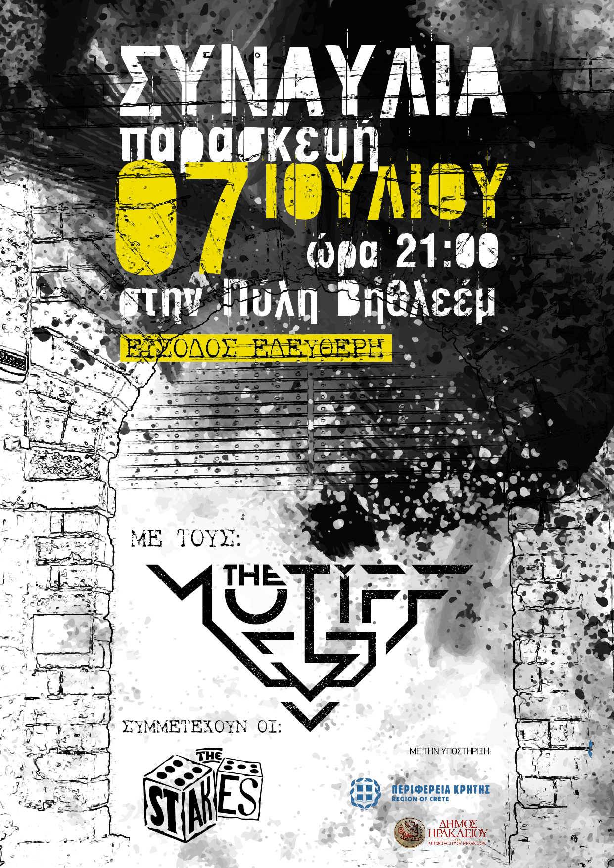 Οι The Motiff, μια Rock μπαντα με Alternative και μελωδικό ήχο, έρχονται να ξεσηκώσουν το Ηράκλειο. Η μπάντα δημιουργήθηκε το 2018, ενώ λίγο αργότερα έβγαλαν και τον πρώτο τους δίσκο «Distance». Έχουν συμμετάσχει στα μεγαλύτερα Festival/Events του νησιού και έχουν μοιραστεί την σκηνή με καλλιτέχνες όπως Locomondo, Nightstalker, Magic De Spell, Ενδελέχεια κτλ. Το 2023 έγιναν σημαντικές αλλαγές στο ύφος, στον ήχο και στο Roster της μπάντας, με την πιο μεγάλη αλλαγή να είναι στα lead vocals. Στα φωνητικά βρίσκεται πλέον η Ιωάννα Πατεράκη, μια εκρηκτική παρουσία επί της σκηνής και μαζί θα παρουσιάσουν το “Distance”, καθώς και νέα κομμάτια από το επερχόμενο άλμπουμ. Το Live θα ανοίξουν οι The Stakes Band.