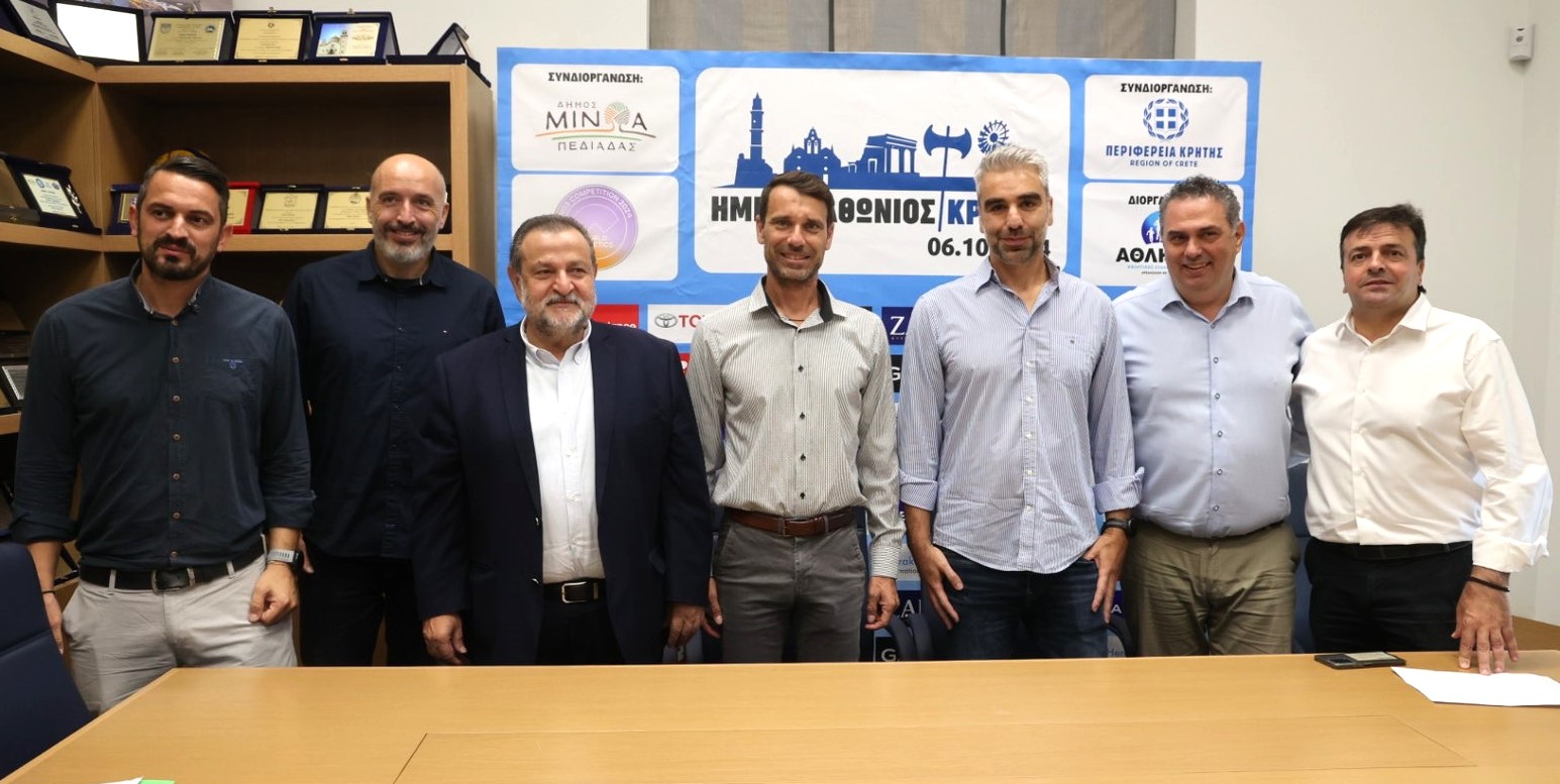 Η μεγάλη αθλητική διοργάνωση της Κρήτης, ο 8ος Ημιμαραθώνιος Κρήτης που θα διεξαχθεί την Κυριακή 6 Οκτωβρίου στο Αρκαλοχώρι παρουσιάστηκε σήμερα στην Περιφέρεια στο πλαίσιο συνέντευξης τύπου. Πρόκειται για ένα σπουδαίο αθλητικό γεγονός στο οποίο θα πάρουν μέρος περισσότεροι από 5.000 αθλητές από 52 χώρες. Όπως τονίστηκε στην συνέντευξη τύπου αποτελεί ένα μεγάλο αθλητικό γεγονός που προάγει τον μαζικό αθλητισμό και τον πολιτισμό.