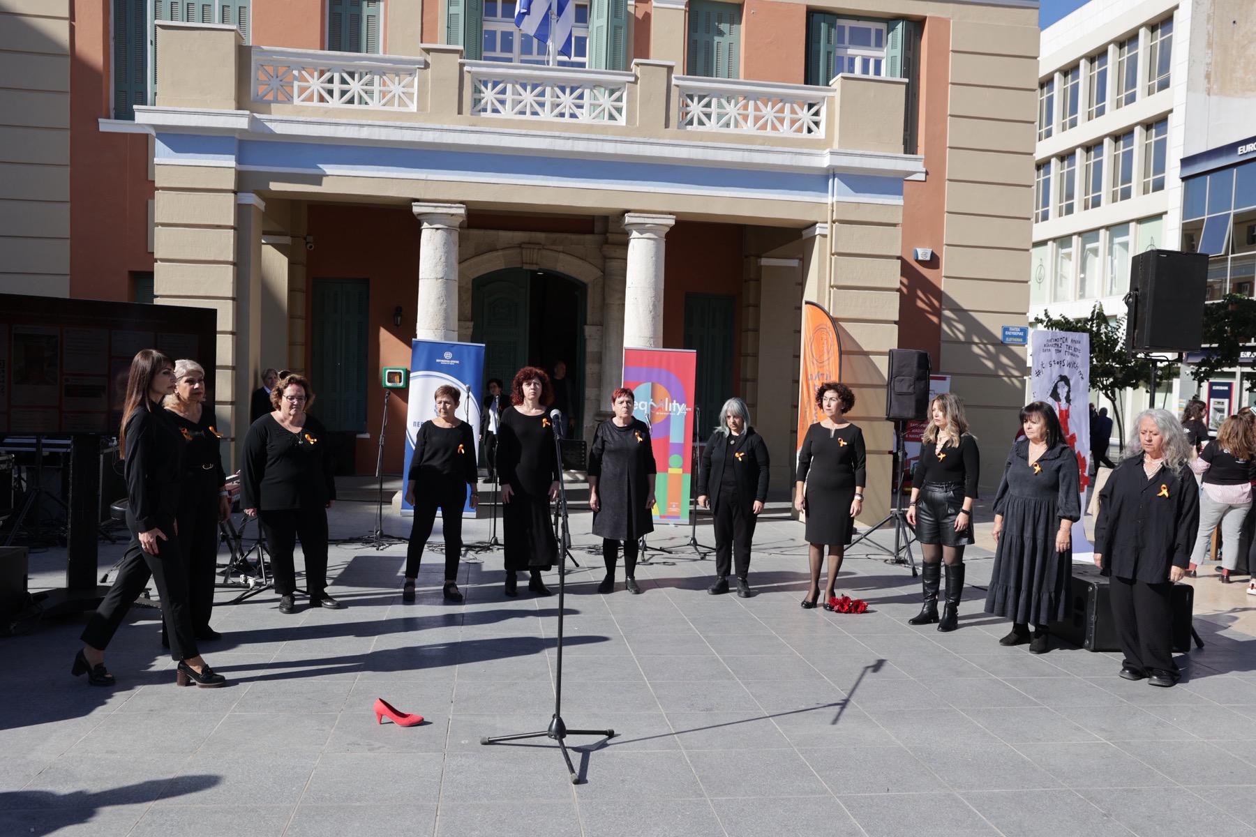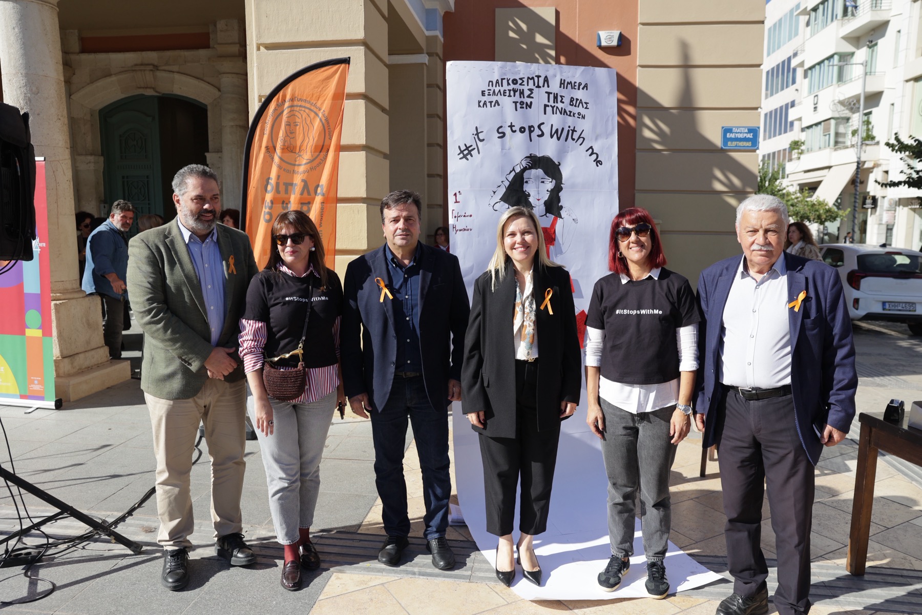 Με μεγάλη συμμετοχή πολιτών και φορέων ολοκληρώθηκε η ανοιχτή εκδήλωση ενημέρωσης και ευαισθητοποίησης της Περιφέρειας Κρήτης, Αυτοτελούς Γραφείου Ισότητας, για την Παγκόσμια Ημέρα Εξάλειψης της Βίας κατά των Γυναικών, που πραγματοποιήθηκε την Τρίτη, 25 Νοεμβρίου 2025, έξω από το κτίριο της Περιφέρειας Κρήτης στην Πλατεία Ελευθερίας.