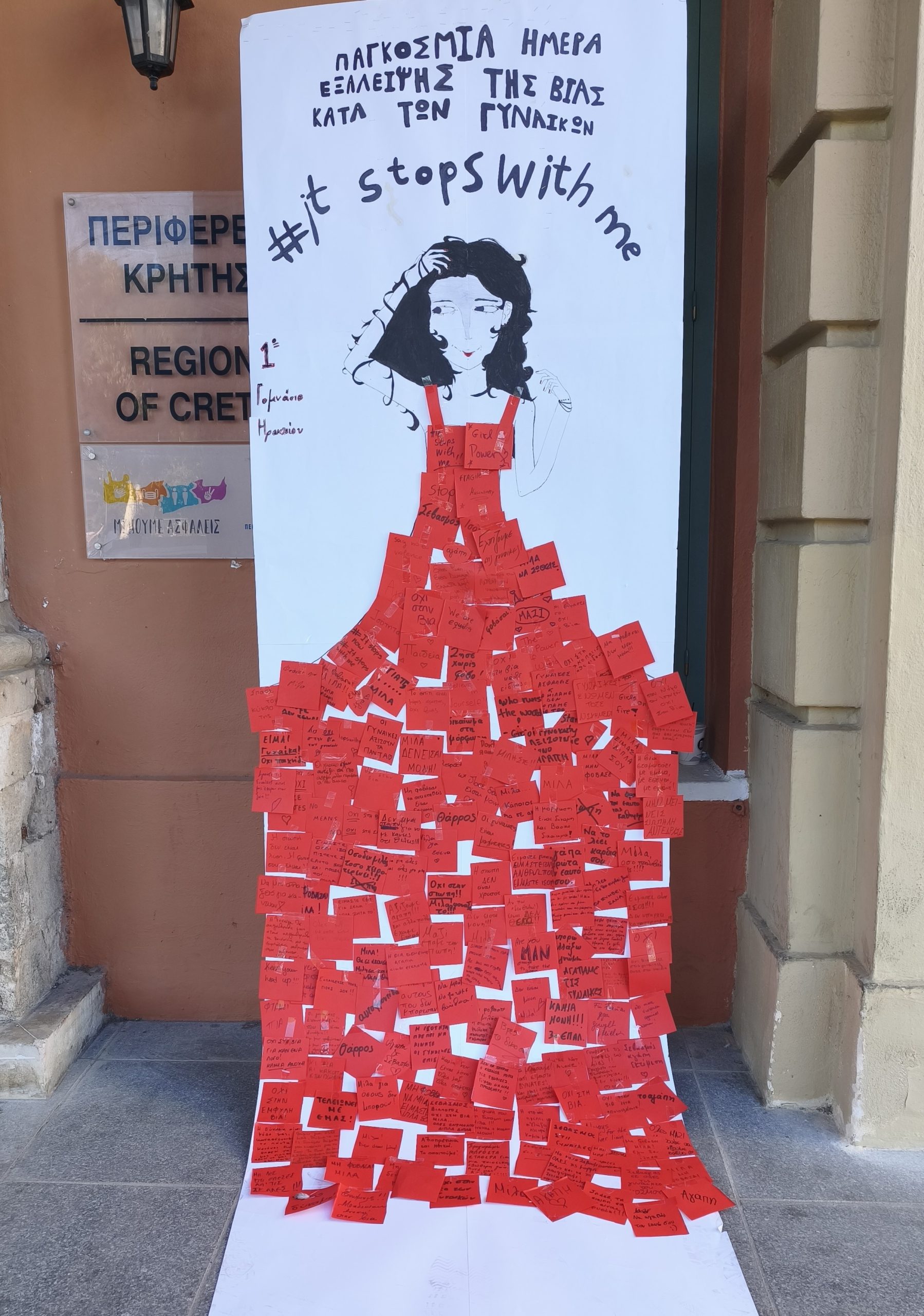 - Το συλλογικό εικαστικό έργο «Η γυναίκα με το κόκκινο φουστάνι», από το 1ο Γυμνάσιο Ηρακλείου