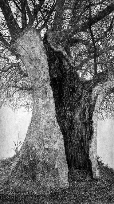 ενδιάμεσο, μεταιχμιακό χώρο, ανάμεσα στο φωτεινό και στο σκοτεινό, στην περιοχή όπου τα δύο αυτά στοιχεία αλληλεπιδρούν και συνυπάρχουν, όπως άλλωστε και τα έργα τους. Ο τίτλος όμως υποδηλώνει και το στοιχείο της αβεβαιότητας που χαρακτηρίζει τη ζωή σήμερα, την αίσθηση αμφιβολίας για το μέλλον του πλανήτη, εξαιτίας της κλιματικής κρίσης. Τα δίχρωμα, μαυρόασπρα έργα της Αντιγόνης Καββαθά και της Αντωνίας Παπατζανάκη αποδίδουν με τον καλύτερο τρόπο αυτήν την εύθραυστη ισορροπία, τη συνύπαρξη αντίθετων δυνάμεων, το μυστήριο του χρόνου. Σε αντίθεση με τον ανατολικό πλάτανο, κάτω από τα καμένα δέντρα ο ελαφρύς αέρας δεν ανακατεύει τις σκιές, το φως δεν έχει χώρο να παίξει. Αλλά το καμένο δέντρο δεν χάνει την ομορφιά του και θα αναγεννηθεί μέσα από τις στάχτες του. Το μάθημα ζωής που παίρνουμε από τα δέντρα -κι αυτό ακριβώς μας βοηθούν να κατανοήσουμε οι δύο καλλιτέχνιδες- είναι ότι τα έχουμε ανάγκη. Αν θέλουμε η ελπίδα (το φως) να νικήσει την απόγνωση (το σκοτάδι) και η ζωή στον πλανήτη Γη να συνεχίσει να υπάρχει.»