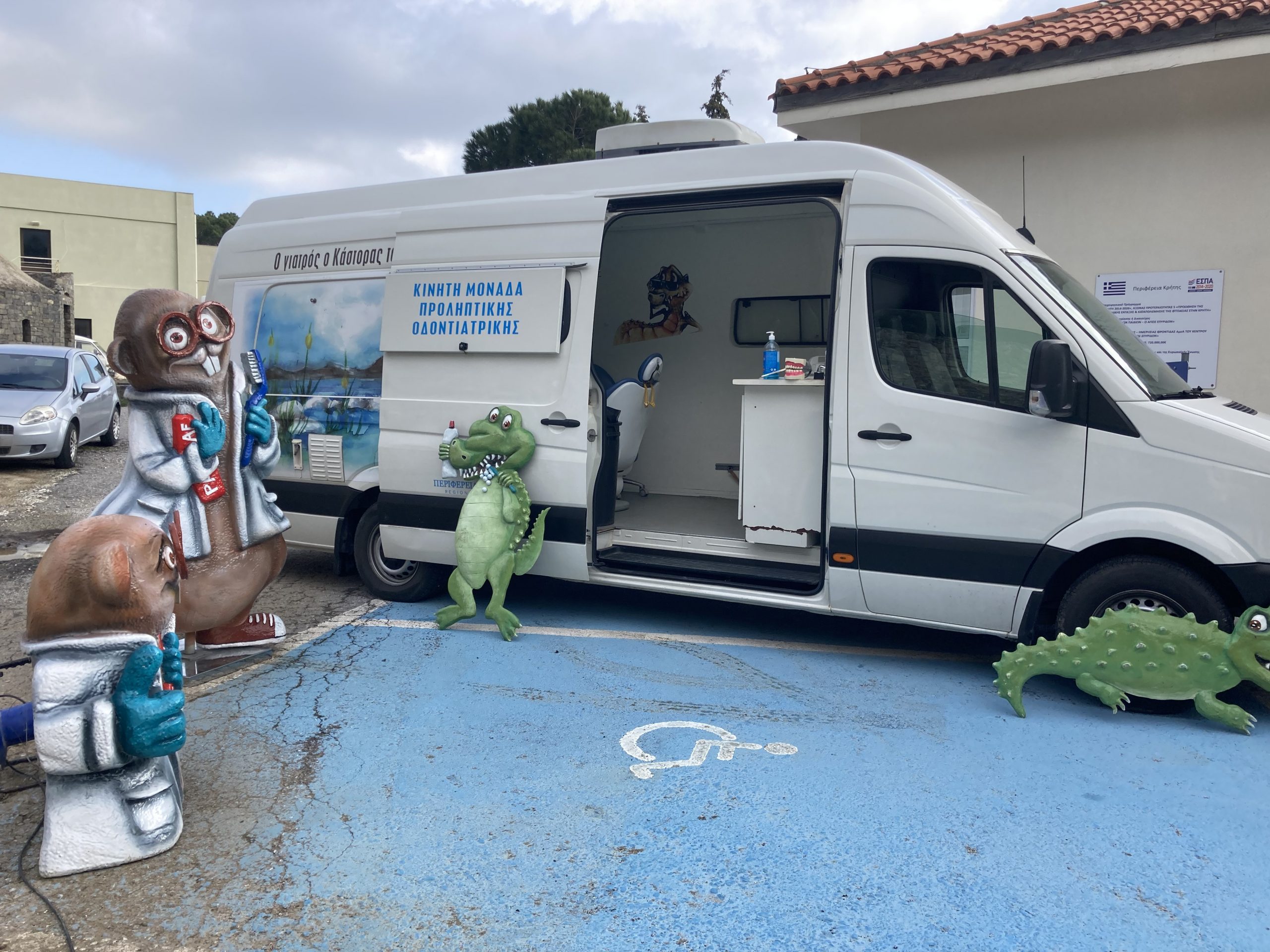 Στις δράσεις του προγράμματος που θέλει να προσεγγίσει τα παιδιά με ένα τρόπο συμβατό προς την ηλικία τους συγκαταλέγεται ο ετήσιος στοματολογικός έλεγχος χιλιάδων μαθητών δημοτικών σχολείων, μέσω της Κινητής Οδοντιατρικής Μονάδας της Περιφέρειας Κρήτης που είναι διακοσμημένη με τρισδιάστατες γραφικές απεικονίσεις, εμπνευσμένες από το παραμύθι «Ο Γιατρός ο Κάστορας των δοντιών ο Μάστορας» της Ειρήνης Ανδρουλάκη. Παράλληλα στα σχολεία που επισκέπτεται η μονάδα διανέμεται δωρεάν το παιδικό παραμύθι, καθώς επίσης χιλιάδες οδοντόβουρτσες διακοσμημένες με ήρωες του παιδικού παραμυθιού ο «Γιατρός ο Κάστορας των δοντιών ο Μάστορας» ενώ σε συνεργασία με τις κατά τόπους Διευθύνσεις Πρωτοβάθμιας Εκπαίδευσης διανέμονται δωρεάν σε όλα τα δημοτικά σχολεία του νησιού.