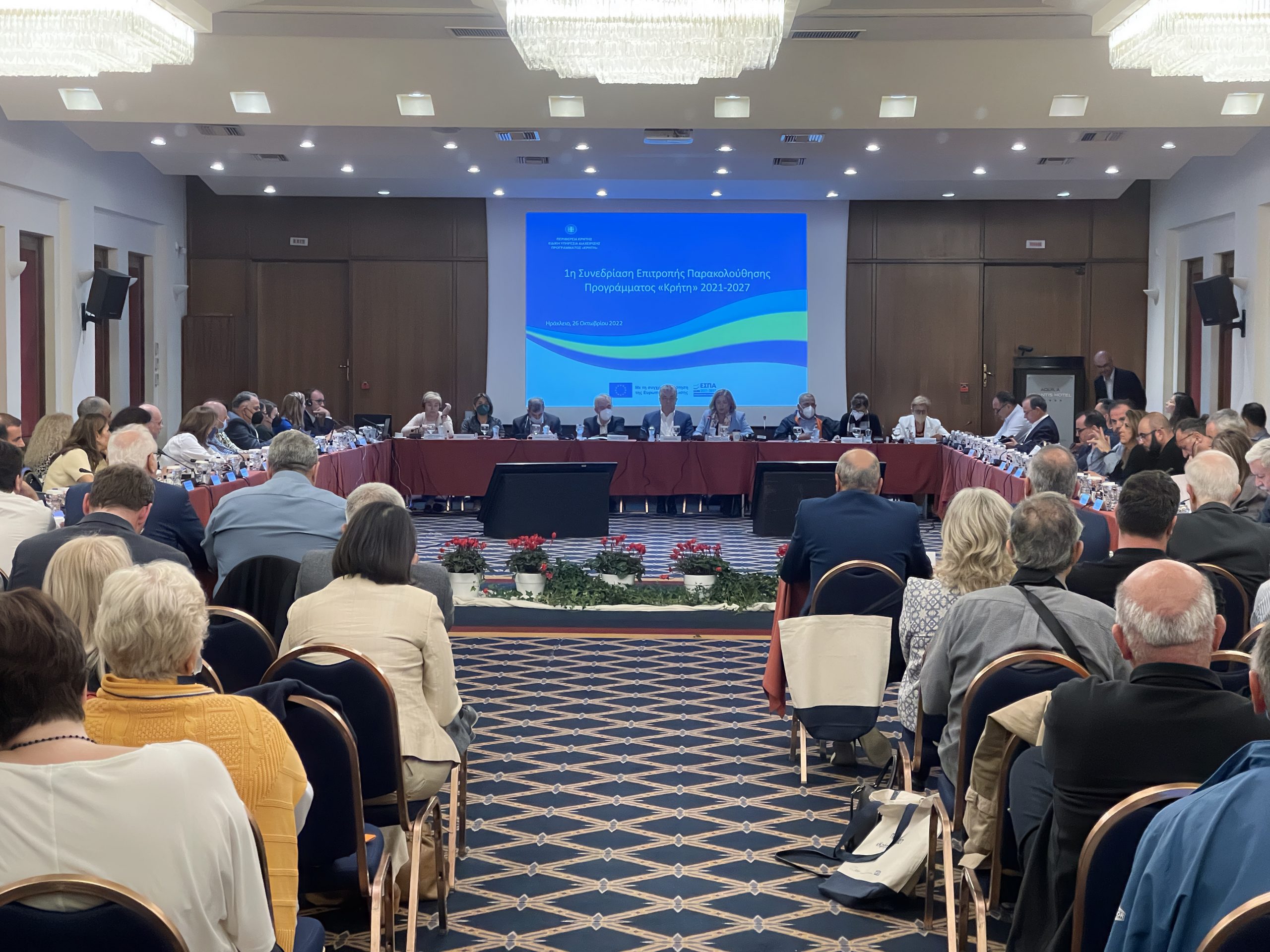 Η 1η συνεδρίαση της Επιτροπής Παρακολούθησης του προγράμματος «Κρήτη 2021-2027» πραγματοποιήθηκε σήμερα στο Ηράκλειο και σε πανηγυρικό κλίμα, λόγω της πρωτιάς που κατέγραψε η Κρήτη στην διαδικασία έγκρισης του προγράμματος από την Ευρωπαϊκή Επιτροπή.