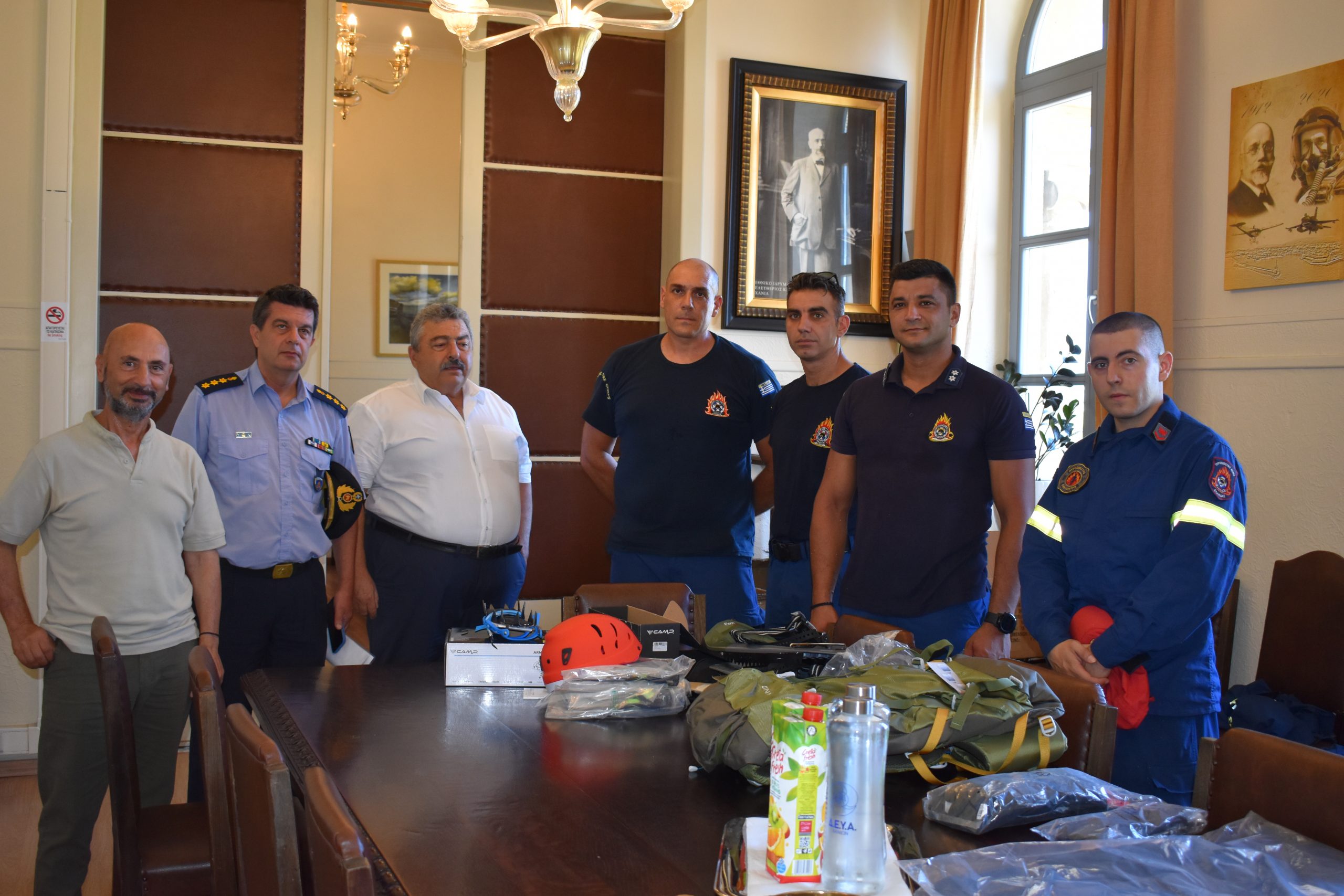 Παραδόθηκε σήμερα, Τρίτη 8 Αυγούστου 2023, από τον Αντιπεριφερειάρχη Χανίων κ. Νίκο Καλογερή διασωστικός εξοπλισμός στα στελέχη της Πυροσβεστικής Υπηρεσίας Νομού Χανίων τα οποία συμμετέχουν σε αποστολές έρευνας και διάσωσης.