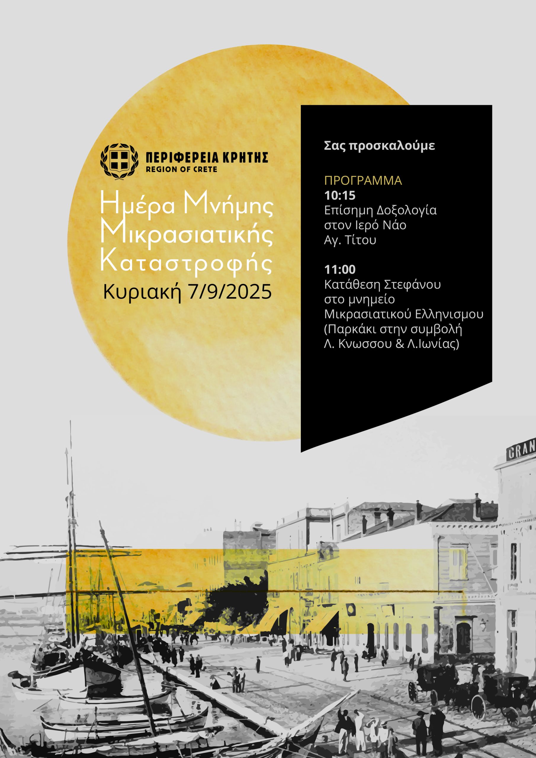 Παρακαλούμε, όσους από τους παραπάνω επιθυμούν να καταθέσουν στεφάνι, να ενημερώσουν για την κατάθεση μέχρι την Πέμπτη 4 Σεπτεμβρίου 2025 στο τηλέφωνο 2813400374 (Ώρες επικοινωνίας: 08.00-14.30)