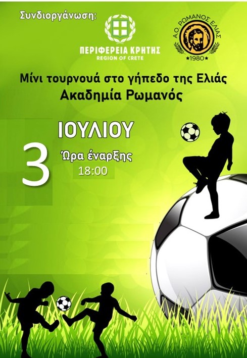 Ποδοσφαιρικό τουρνουά για τους αθλητές των ακαδημιών του οργανώνει το αθλητικό σωματείο «Ρωμανός Ελιάς» με την στήριξη της Περιφέρειας Κρήτης