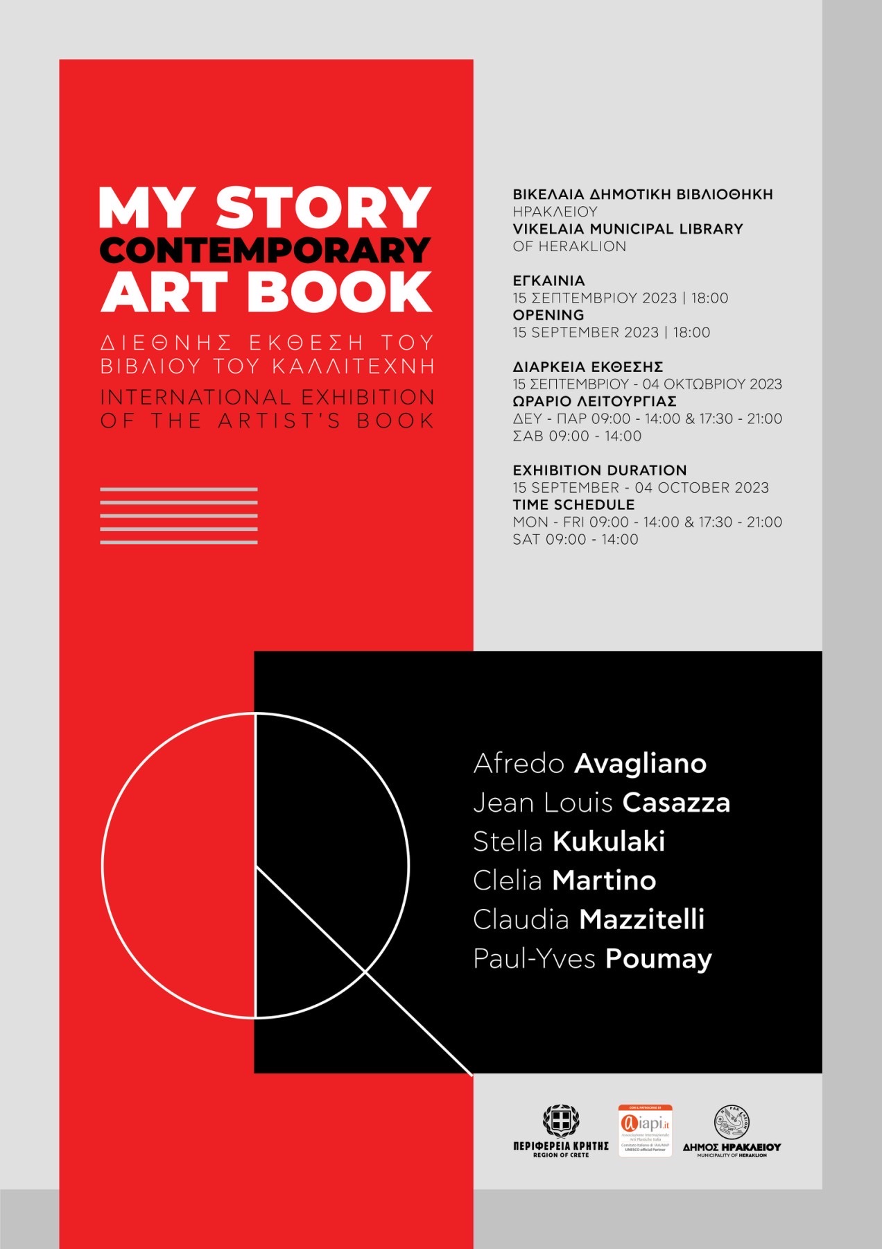 Με τη διαδραστική συμμετοχή μαθητών από σχολεία της Κρήτης συνεχίζεται στη Βικελαία Βιβλιοθήκη, μέχρι τις 4 Οκτωβρίου του 2023, η διεθνής έκθεση «MyStoryContemporaryArtBook». Πρόκειται για ένα ξεχωριστό εγχείρημα σύγχρονης ευρωπαϊκής τέχνης με έργα καλλιτεχνών από την Ιταλία, τη Γαλλία, το Βέλγιο και την Ελλάδα, με τη συνδιοργάνωση της Περιφέρειας Κρήτης και του Δήμου Ηρακλείου.