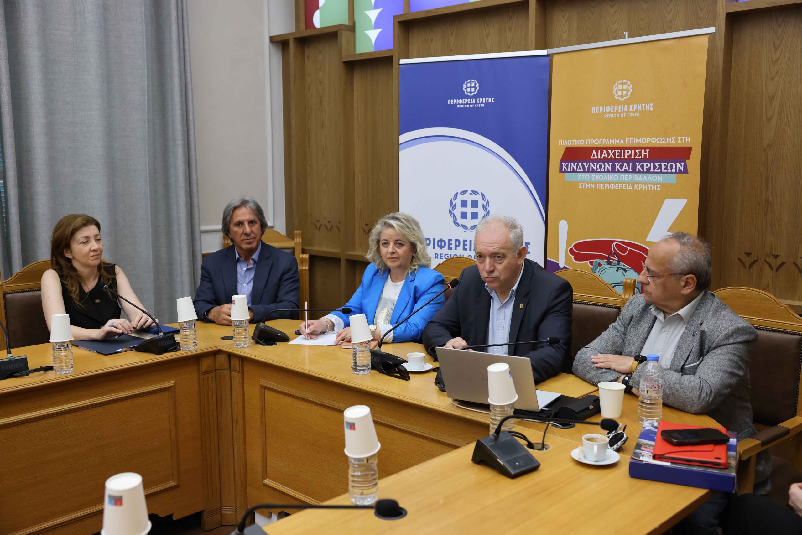 Με ιδιαίτερη επιτυχία ολοκληρώθηκε το «Πιλοτικό Πρόγραμμα Επιμόρφωσης στη Διαχείριση Κινδύνων και Κρίσεων στο Σχολικό Περιβάλλον στην Περιφέρεια Κρήτης», μία πρωτοποριακή δράση της Περιφέρειας Κρήτης που υλοποιείται σε συνεργασία με το Εθνικό και Καποδιστριακό Πανεπιστήμιο Αθηνών. Στο πρόγραμμα συμμετείχαν πιλοτικά 40 σχολικές μονάδες από όλη την Κρήτη, με στόχο την εκπαίδευση εκπαιδευτικών στη διαχείριση φυσικών, τεχνολογικών και ανθρωπογενών κινδύνων και κρίσεων στο σχολικό περιβάλλον, εξετάζοντας τόσο τα φαινόμενα και τις επιπτώσεις τους, όσο και το σχετικό θεσμικό πλαίσιο και την ψυχοκοινωνική διαχείρισή τους.