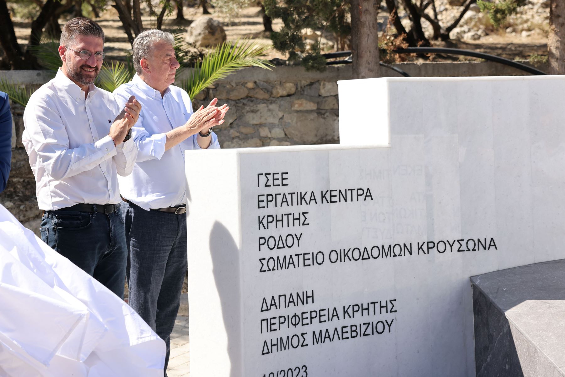 Ένα όραμα των συνδικαλιστών της Κρήτης και Ρόδου έγινε πράξη σήμερα Κυριακή 29 Σεπτεμβρίου στην περιοχή Αγ. Γεώργιος Κοκκινιάκο στον Κρουσώνα, όπου πραγματοποιήθηκαν τα εγκαίνια του μνημείου για τα θύματα των εργατικών δυστυχημάτων.
