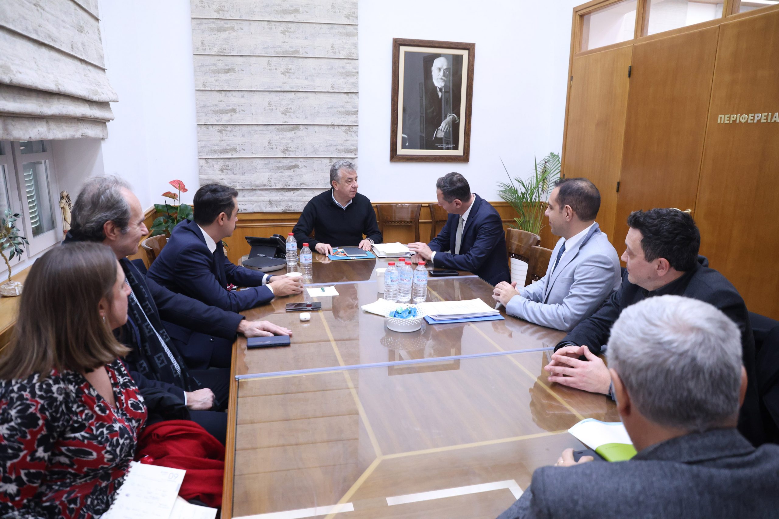 Μετά τις δηλώσεις ακολούθησε σύσκεψη του κλιμακίου του ΑΔΜΗΕ με τον Περιφερειάρχη Κρήτης παρουσία και του Αντιπεριφερειάρχη Περιβάλλοντος Νίκου Ξυλούρη.