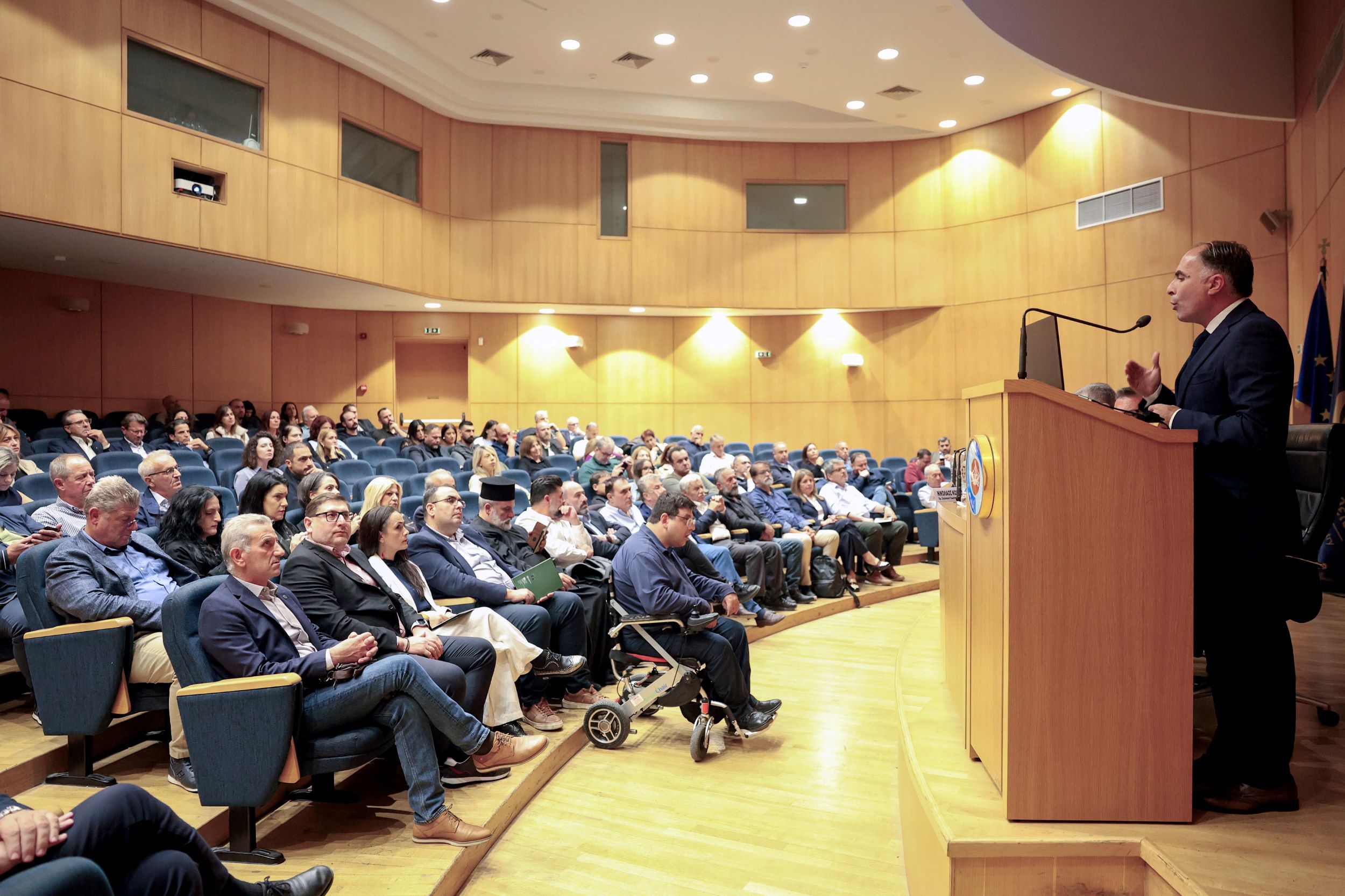 Χαιρέτησαν την εκδήλωση οι: Αλιφιεράκης Εμμανουήλ, Πρόεδρος Επιμελητηρίου Ηρακλείου (ΕΒΕΗ). Ταβερναράκης Γεώργιος, Πρόεδρος Τεχνικού Επιμελητηρίου Ανατολικής Κρήτης (ΤΕΕ/ΤΑΚ). Δασκαλάκη Άννα, Πρόεδρος Γεωτεχνικού Επιμελητηρίου Κρήτης (ΓΕΩΤΕΕ). Λεκάκης Χαράλαμπος, Πρόεδρος Ομοσπονδίας Επαγγελματιών Βιοτεχνών και Εμπόρων Ηρακλείου (ΟΕΒΕΝΗ). Γκλάκας Ευάγγελος, Πρόεδρος Οικονομικού Επιμελητήριου Ελλάδος Τμήμα Ανατολικής Κρήτης (ΟΕΕ/ΤΑΚ).