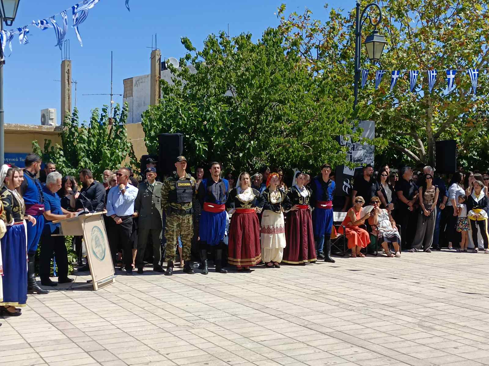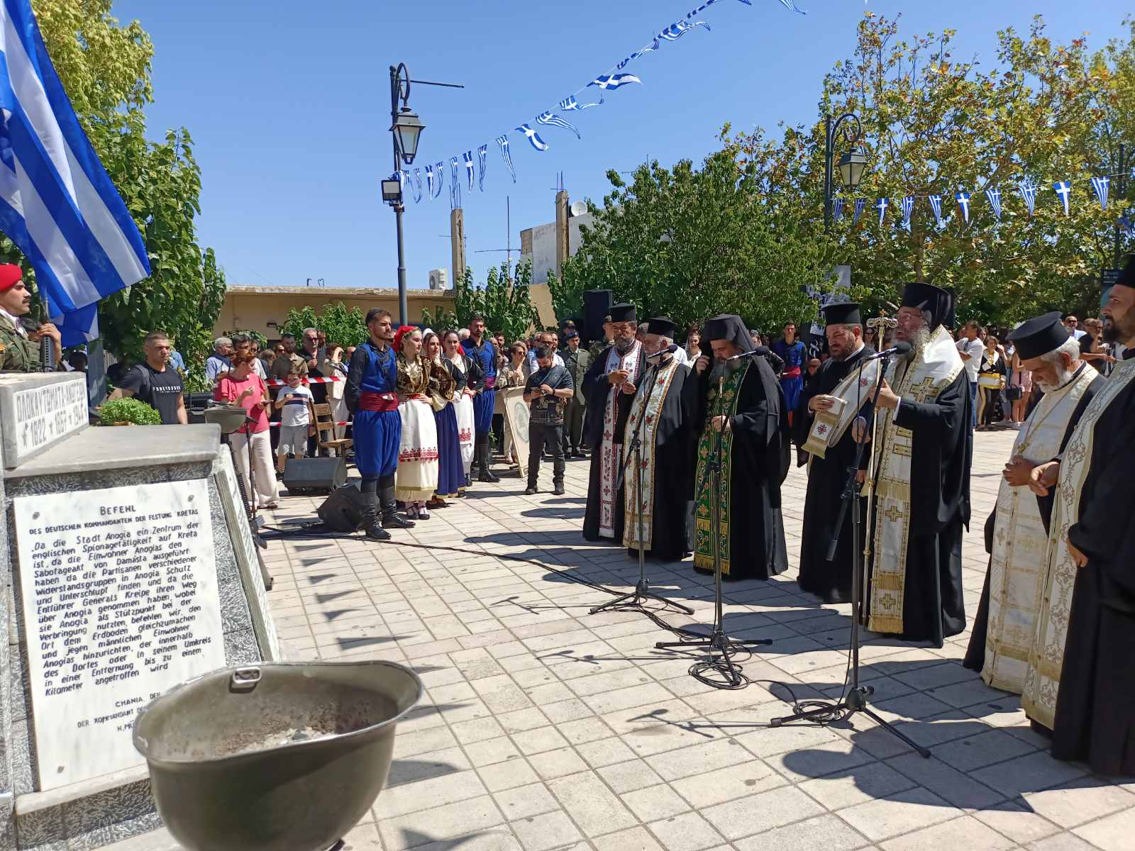 Νωρίτερα τελέστηκε Δοξολογία και επιμνημόσυνη δέηση από τον Σεβασμιώτατο Μητροπολίτη Ρεθύμνης και Αυλοποτάμου  κ.κ. Πρόδρομο με την συμμετοχή ιερέων της περιοχής. Ακολούθησε  ομιλία από τον φιλόλογο  Δημήτρη Σαλούστρο-Ζαΐμη, όπως και απόδοση του ύμνου-τραγουδιού της «Παναγιάς της Ανωγειανής» από τους: Μαρίνα Δακανάλη- τραγούδι, Ιωάννα Ρήγα-σαντούρι, Λυκούργο Πασπαράκη -μαντολίνο. Κρατήθηκε ενός λεπτού σιγή και έγινε ανάκρουση του Εθνικού μας ύμνου.