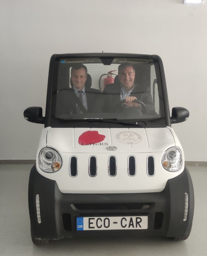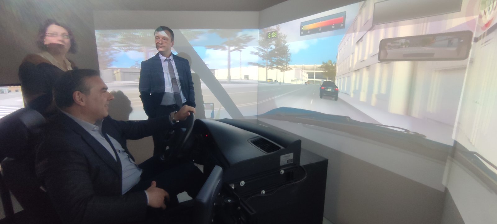 Η επίσκεψη του αντιπεριφερειάρχη ολοκληρώθηκε με ξενάγηση στις εγκαταστάσεις του Εργαστηρίου LaHeRS, στους ειδικά διαμορφωμένους χώρους του προσομοιωτή οδήγησης και των ηλεκτροκίνητων οχημάτων, όπου ενημερώθηκε από τα μέλη του εργαστηρίου κ. Γεώργιο Μαρκάκη , καθηγητή και αναπλ. Διευθυντή και τον κ. Ιωάννη Χλιαουτάκη , Ομότιμο Καθηγητή του Τμήματος Κοινωνικής Εργασίας, σχετικά με τα προγράμματα κυκλοφοριακής αγωγής που υλοποιεί το εργαστήριο σε μαθητές, σχολικές μονάδες της Κρήτης, συλλόγους και ομάδες επαγγελματιών καθώς και για τα αναμορφωτικά μέτρα που εφαρμόζονται. Ιδιαίτερη αναφορά έγινε στο πρόγραμμα ομαδικής συμβουλευτικής σε ανήλικους παραβάτες που προσφέρει το εργαστήριο σε συνεργασία με την Εισαγγελία Ηρακλείου καθώς και σε πειραματικές μελέτες που διεξάγει το εργαστήριο με χρήση του εξειδικευμένου εξοπλισμού προσομοίωσης οδήγησης για την διερεύνηση της επίδρασης των φαρμάκων στην οδηγική ικανότητα.