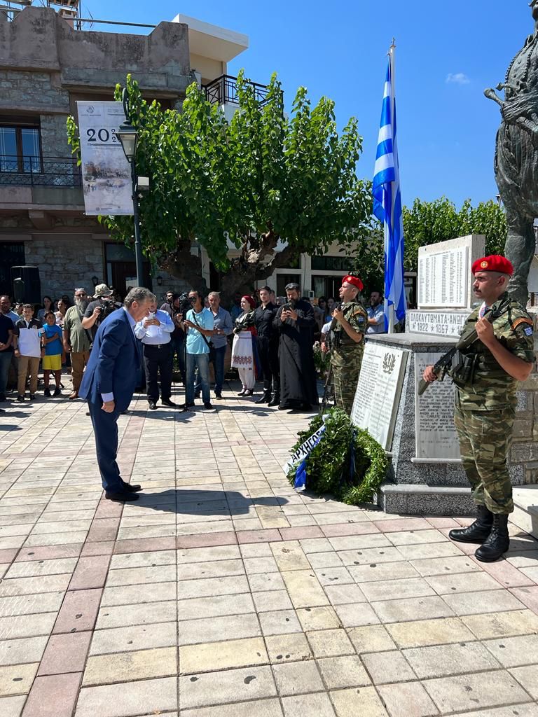 Ο Περιφερειάρχης Κρήτης Σταύρος Αρναουτάκης συμμετείχε σήμερα στα Ανώγεια στις εκδηλώσεις τιμής και μνήμης της 78ης επετείου του ολοκαυτώματος από τα ναζιστικά στρατεύματα και κατέθεσε στεφάνι στο μνημείο των πεσόντων αγωνιστών.
