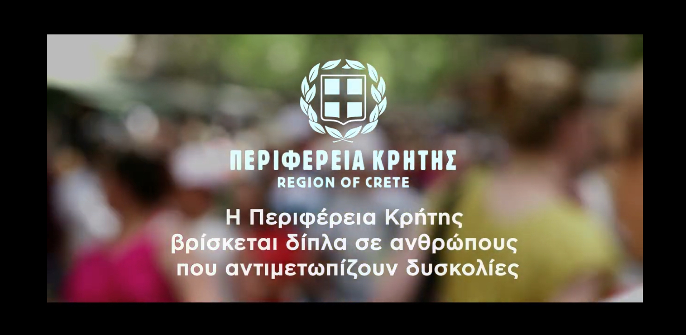Στο παραπάνω πλαίσιο, δημιουργήθηκε βίντεο με σκοπό την ενημέρωση και ευαισθητοποίηση των πολιτών για τις δράσεις που υλοποιούνται σε υπερτοπικό επίπεδο στην Περιφέρεια Κρήτης και έχουν στόχο την παροχή στήριξης στην οικογένεια, το παιδί, τους ηλικιωμένους, άτομα με αναπηρίες και γενικά ευπαθείς πληθυσμιακές ομάδες  αλλά και την ενημέρωση των διαφόρων Φορέων και Υπηρεσιών για να  αναζητήσουν και  να αξιοποιήσουν πληροφορίες για τους ωφελούμενούς τους.