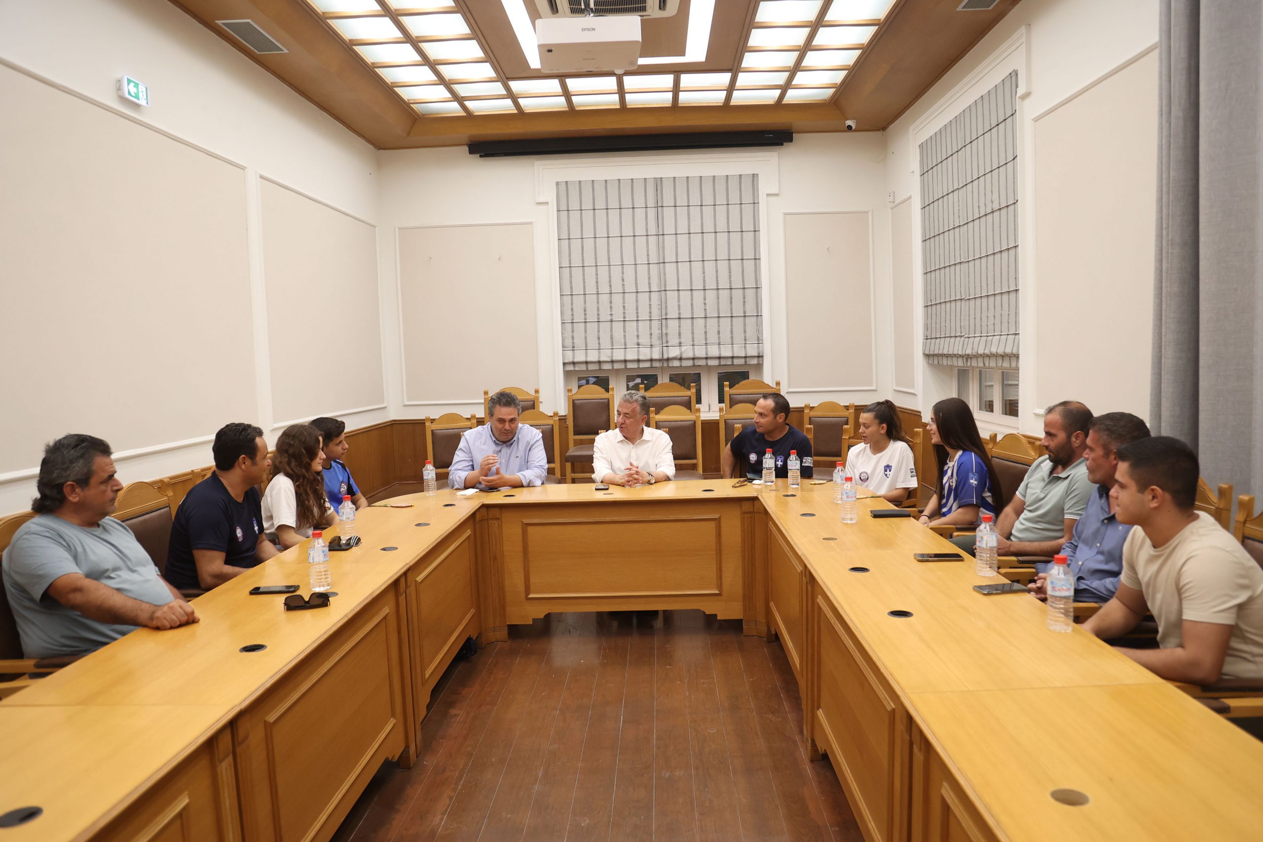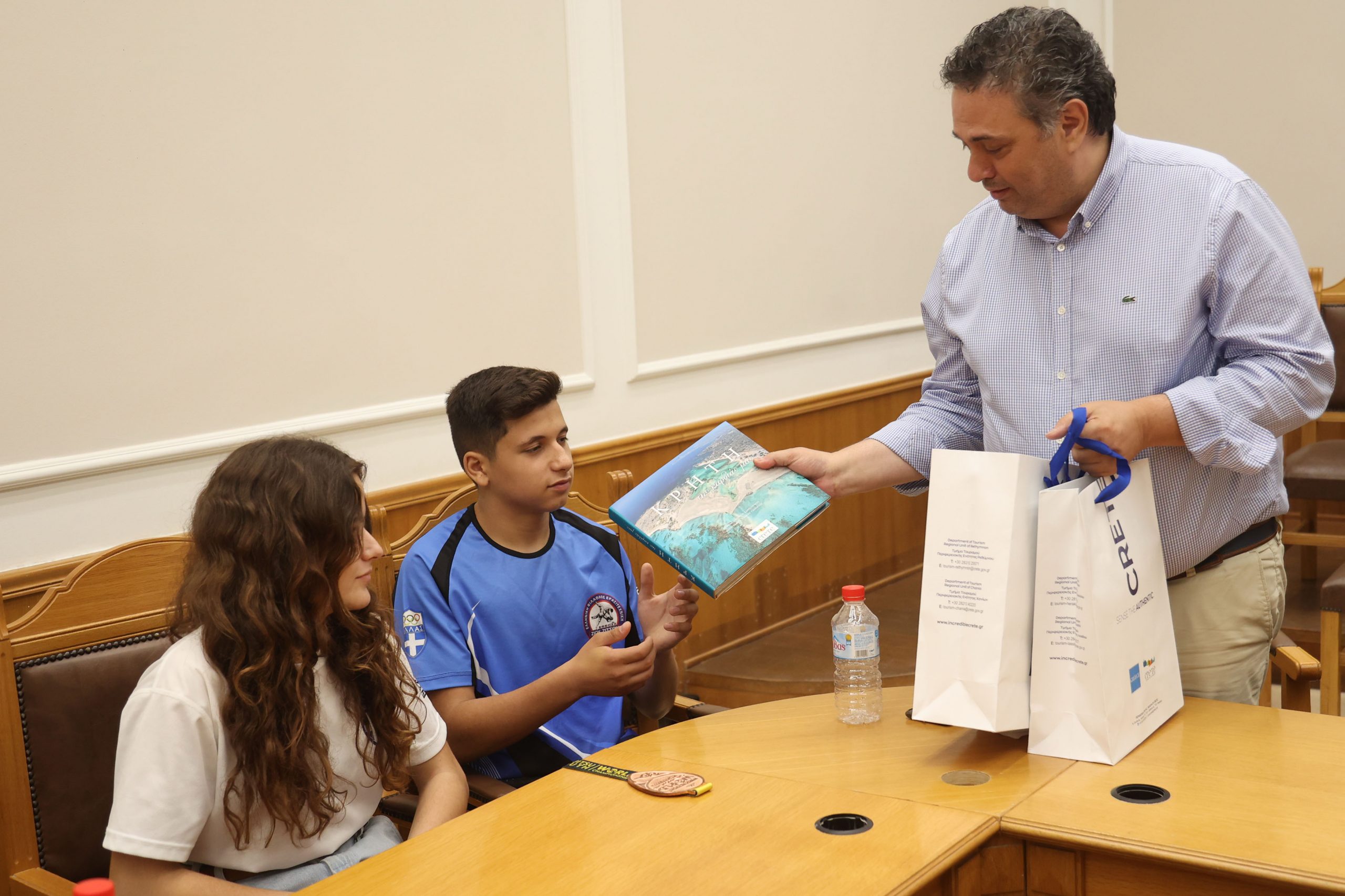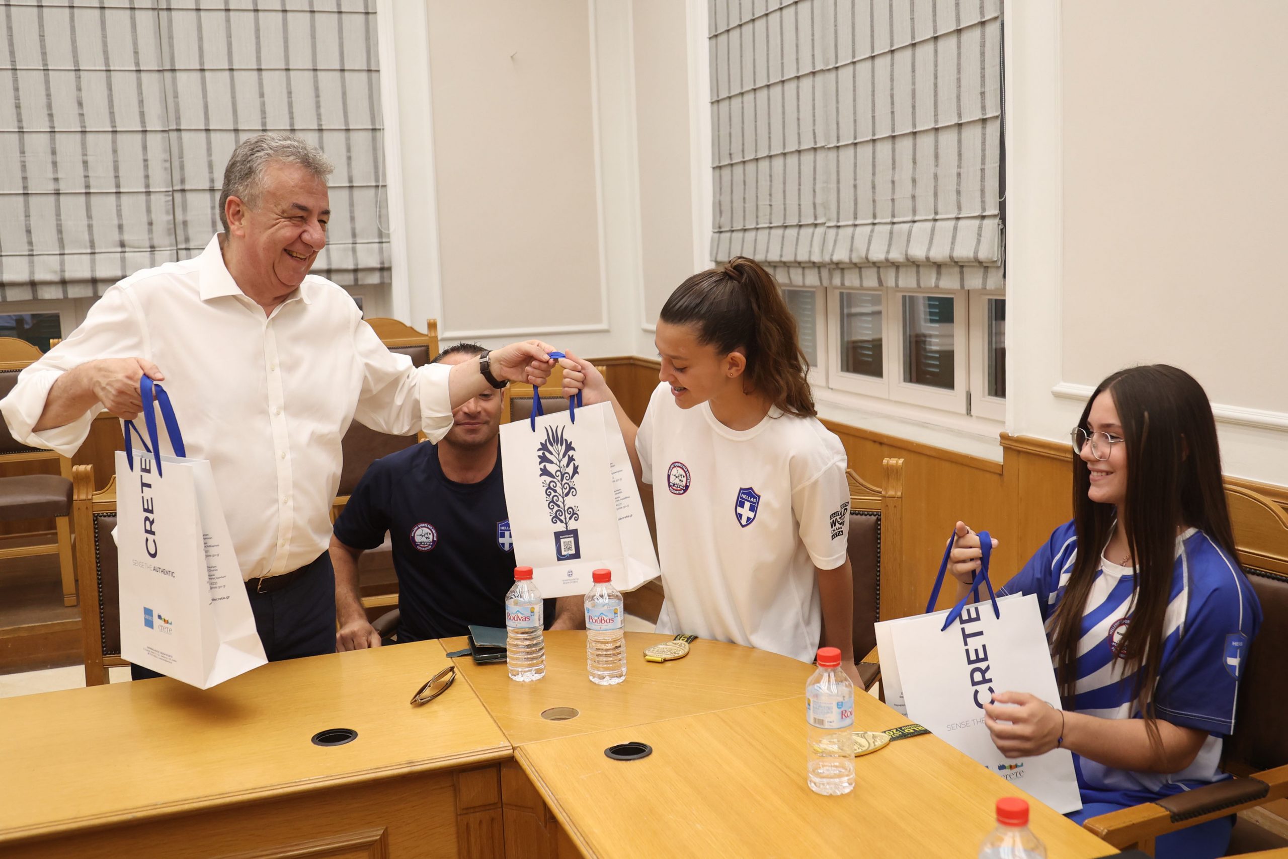 Ο Περιφερειάρχης Κρήτης Σταύρος Αρναουτάκης καλωσορίζοντας τα μέλη της εθνικής μας ομάδας, τους συνεχάρη για τις διακρίσεις τους επισημαίνοντας ότι η Περιφέρεια Κρήτη αγκαλιάζει τον αθλητισμό, ενισχύει το ευ αγωνίζεσθε και την ευγενή άμιλλα. Επίσης ευχήθηκε στους αθλητές νέες επιτυχίες και στο μέλλον, όπως επίσης καλή πρόοδο στις σπουδές τους.