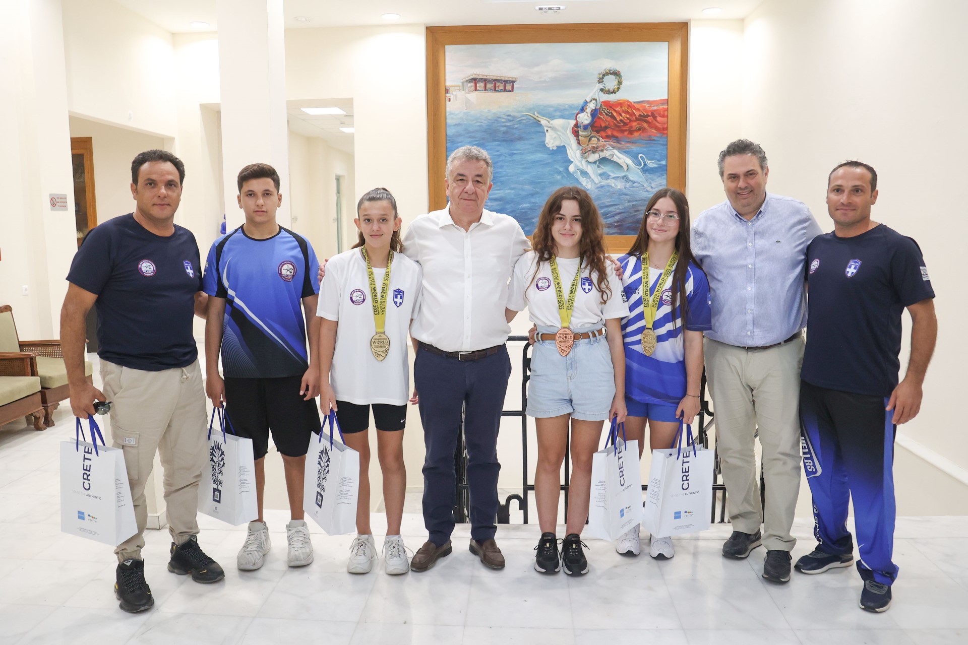 Συγκεκριμένα ο Περιφερειάρχης και ο Αντιπεριφερειάρχης υποδέχτηκαν τους προπονητές και τους διακριθέντες αθλητές που προέρχονται από σχολές του Ηρακλείου, Βερικοκίδη Αικατερίνη ( 1η θέση), Καλλιγιαννάκη Αντωνία (1η θέση), Ψυλλάκη Σοφία (3η θέση), Ριζάκη Βασιλική (5η θέση), Ριζάκη Μαρία Καλλιόπη (7η θέση), Ιωάννη Zαϊμάκη (7η θέση), Αλέξανδρο Zαϊμάκη(προπονητή) και Γιώργου Zαϊμάκη (προπονητή).