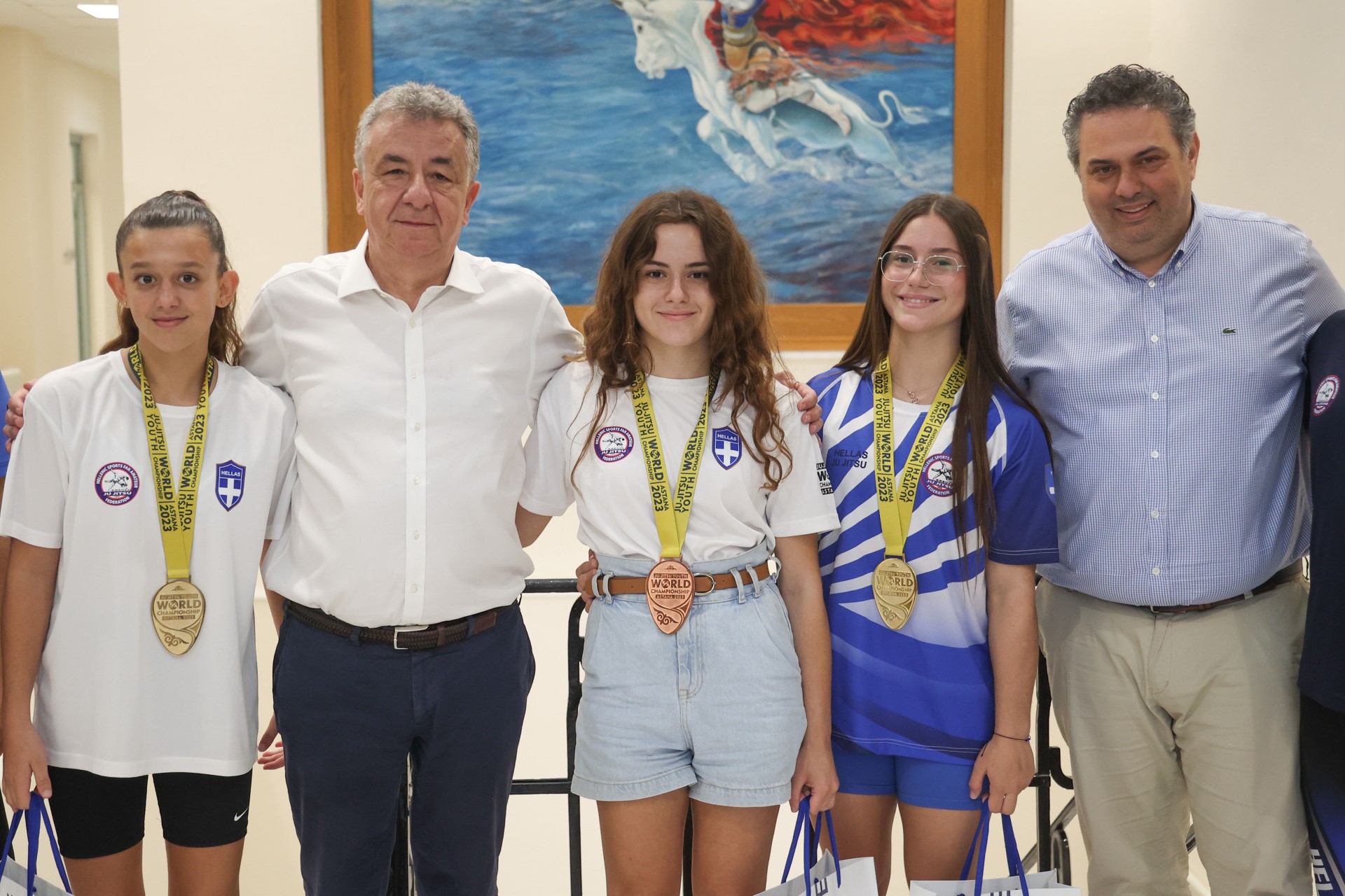 Με τις αθλήτριες και τους αθλητές που κατέκτησαν χρυσά, ασημένια και χάλκινα μετάλλια στο Παγκόσμιο Πρωτάθλημα ΖίουΖίτσου συναντήθηκε ο Περιφερειάρχης Κρήτης Σταύρος Αρναουτάκης παρόντος του Αντιπεριφερειάρχη Αθλητισμού Γιώργου Πιτσούλη.