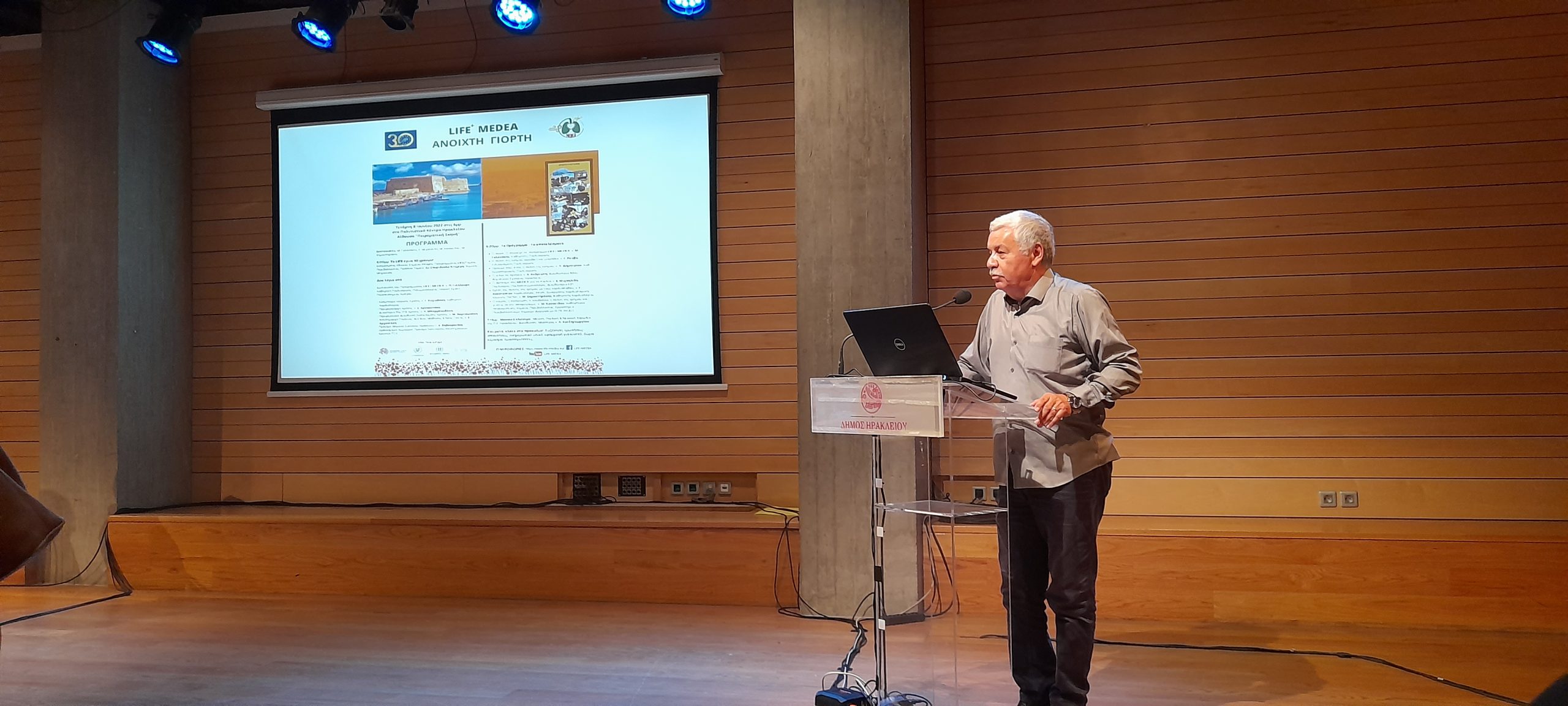 Κατά τον χαιρετισμό του στην εκδήλωση στο Πολιτιστικό Κέντρο Ηρακλείου, ο Αντιπεριφερειάρχης σημείωσε τη σπουδαιότητα των επιπτώσεων της κλιματικής αλλαγής στον τομέα της υγείας, ενώ τόνισε ότι στόχος της Περιφέρειας Κρήτης είναι η πολιτική ενημέρωσης για το φαινόμενο. Ανέφερε ότι η Περιφέρεια έχει ήδη εκπονήσει τη μελέτη σχεδιασμού για την προσαρμογή στην κλιματική αλλαγή (ΠΕΣΠΚΑ), στην οποία συμμετείχαν σημαντικά μέλη της ομάδας του προγράμματος LIFE MEDEA, από την Ιατρική Σχολή και το Τμήμα Χημείας του Πανεπιστημίου Κρήτης.