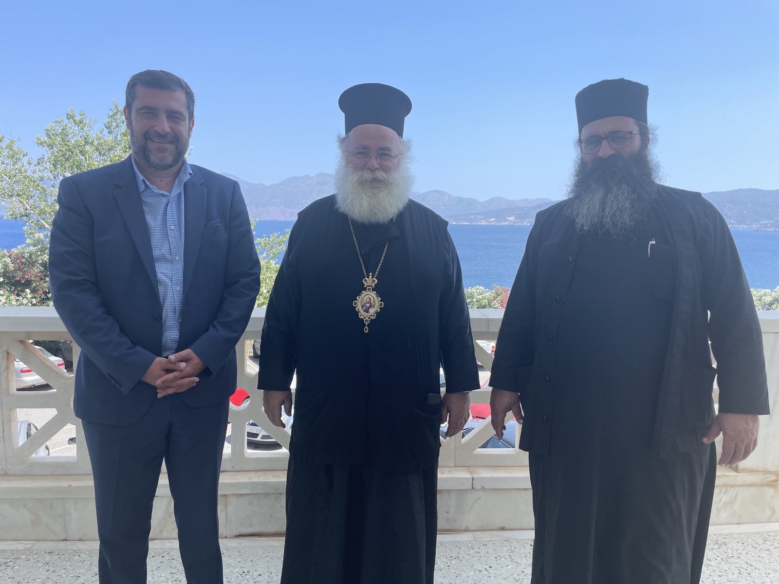 Με το Σεβασμιότατο Μητροπολίτη Ιεραπύτνης και Σητείας κ. Κύριλλο, συνοδευόμενο από τον Πανοσιολογιότατο Πρωτοσύγκελο και Ηγούμενο της Ιεράς Μονής Τοπλού Αρχιμανδίτη π. Αμβρόσιο Σκαρβέλη, συναντήθηκε ο Αντιπεριφερειάρχης Λασιθίου Γιάννης Ανδρουλάκης.