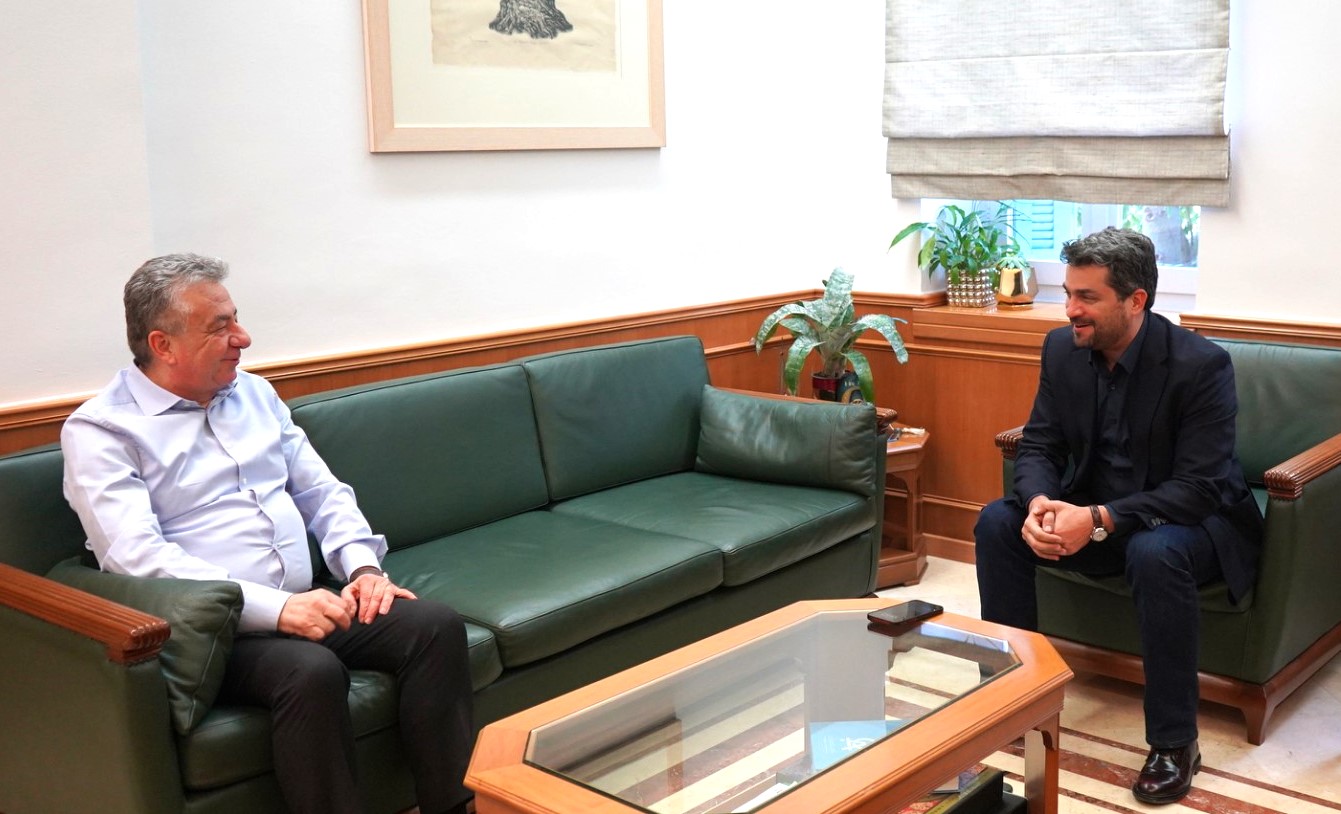 Ο Δήμαρχος Χανίων Παναγιώτης Σημανδηράκης επισκέφθηκε σήμερα τον Περιφερειάρχη Κρήτης Σταύρο Αρναουτάκη. Στη συνάντηση εξετάστηκε η πορεία υλοποίησης όλων των έργων που πραγματοποιούνται στο δήμο Χανίων με την συνδρομή της Περιφέρειας Κρήτης. Παράλληλα συζητήθηκε ο σχεδιασμός-προγραμματισμός υλοποίησης νέων έργων και δράσεων στο πλαίσιο της νέας προγραμματικής περιόδου.
