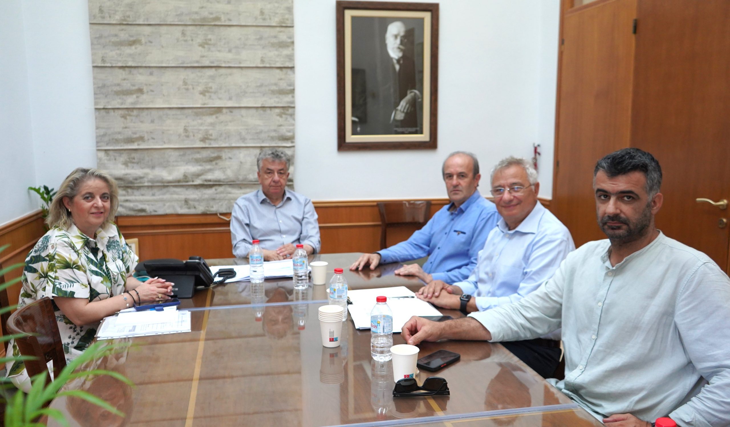Με τον Δήμαρχο Ιεράπετρας Μανόλη Φραγκούλη συναντήθηκε σήμερα ο Περιφερειάρχης Κρήτης Σταύρος Αρναουτάκης. Στη συνάντηση, παρουσία της Εντεταλμένης Περιφερειακής Συμβούλου για θέματα Παιδείας και Δια Βίου Μάθησης Ελένης Μαράκη, των Αντιδημάρχων Ανδρέα Σκουλούδη και Μάνου Τζώρτζη εξετάστηκαν θέματα υποδομών και ανάπτυξης στην Ιεράπετρα. Ειδικότερα συζητήθηκαν θέματα που αφορούν τον τομέα εκπαίδευσης, την σχολική στέγη, την ενεργειακή αναβάθμιση σχολικών μονάδων με την αξιοποίηση Ευρωπαϊκών πόρων όπως επίσης η πορεία των έργων που έχουν ενταχθεί στο ΕΣΠΑ αλλά και ζητήματα ύδρευσης.
