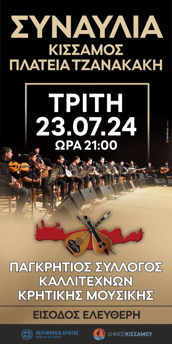 23 Ιουλίου στο Καστέλι Κισσάμου, στην Πλατεία Τζανακάκη.