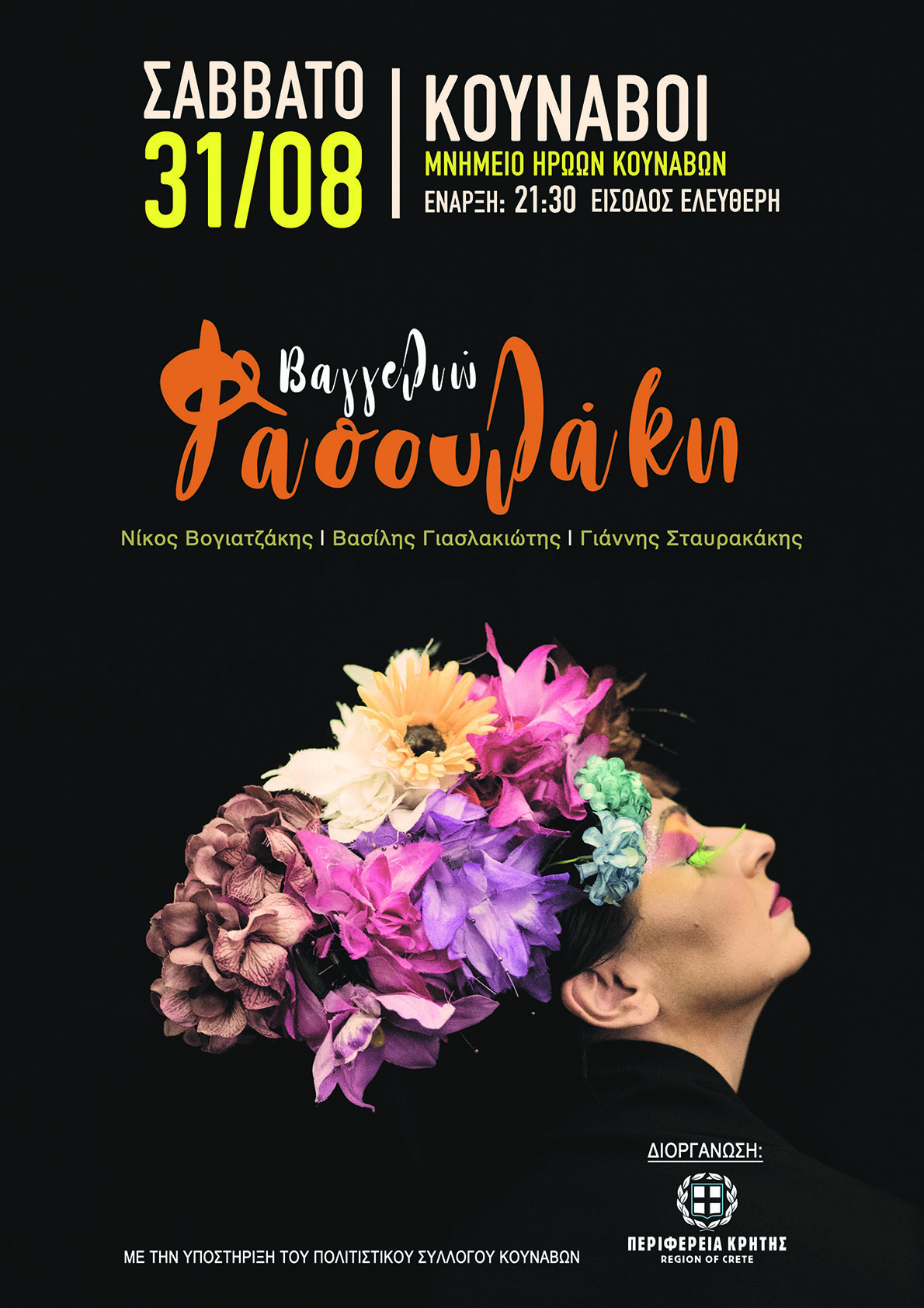 Δύο συναυλίες με την Βαγγελιώ Φασουλάκη διοργανώνονται από τους Πολιτιστικούς Συλλόγους Κουνάβων και Ποταμιών και με την στήριξη της Περιφέρειας Κρήτης.