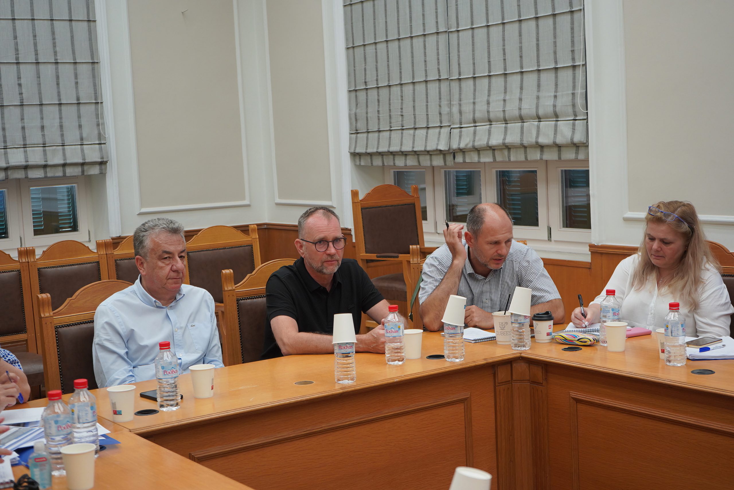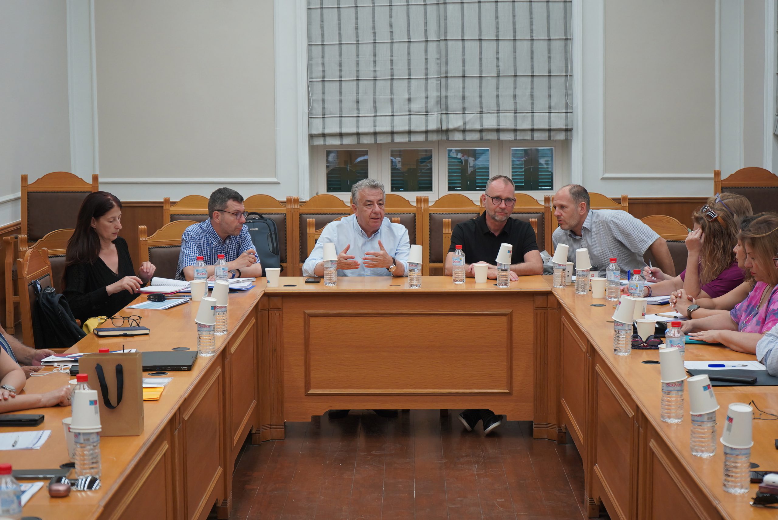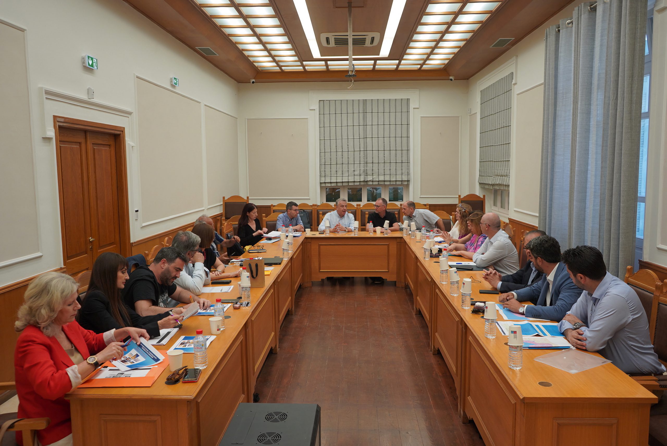Σύσκεψη εκπροσώπων της μονάδας Ελλάδας και Κύπρου της Γενικής Δ/σης Περιφερειακής Πολιτικής (DG REGIO) με Δημάρχους των τεσσάρων πόλεων που υλοποιούν Στρατηγικές Βιώσιμης Αστικής Ανάπτυξης πραγματοποιήθηκε στην Αίθουσα συσκέψεων της Περιφέρειας Κρήτης, υπό τον Περιφερειάρχη Κρήτης Σταύρο Αρναουτάκη.