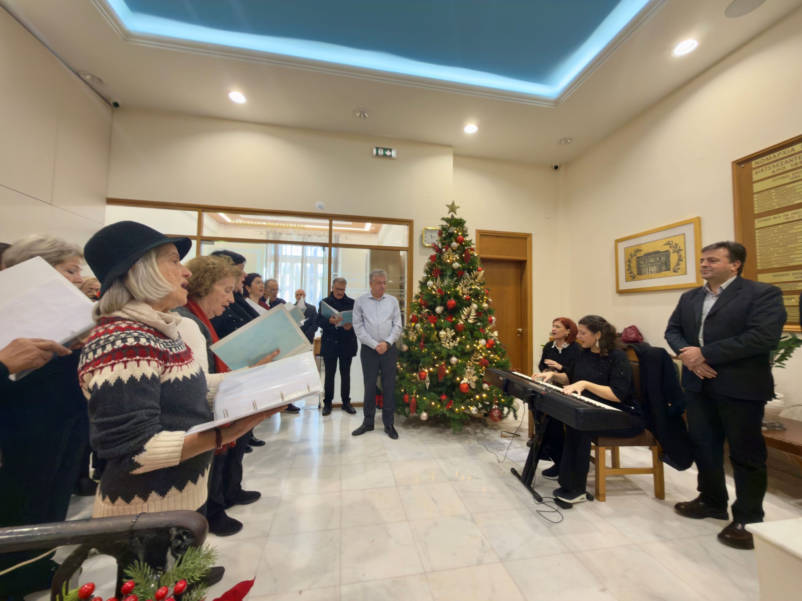Τα παραδοσιακά κάλαντα της Κρήτης αλλά και της Κεφαλονιάς πλημμύρισαν σήμερα το κτίριο της Περιφέρειας Κρήτης στο Ηράκλειο. Η χορωδία «Ιωνία Αηδών», υπό τη διεύθυνση της μαέστρου Λένας Χατζηγεωργίου, επισκέφθηκε τον Περιφερειάρχη Κρήτης Σταύρο Αρναουτάκη, τηρώντας την καθιερωμένη ετήσια παράδοση της χορωδίας.
