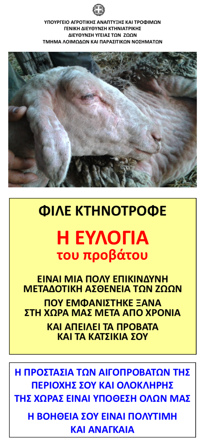 Μετά το επιβεβαιωμένο κρούσμα ευλογιάς των αιγοπροβάτων, η Κτηνιατρική Υπηρεσία της Περιφέρειας Κρήτης προχώρησε στην έκδοση των σχετικών αποφάσεων και την εφαρμογή των προβλεπόμενων μέτρων για την αντιμετώπιση της εξάπλωσης της ζωονόσου.
