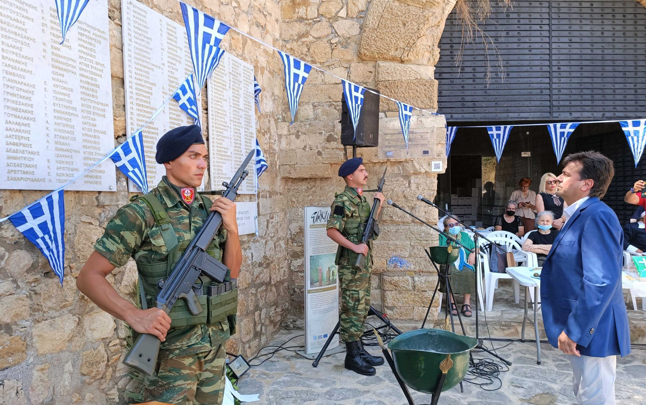 Βουλευτές Ηρακλείου Νίκο Ηγουμενίδη, Βασίλη Κεγκέρογλου, τους εκπροσώπους του Υφυπουργού Πολιτισμού Λευτέρη Αυγενάκη και Σωκράτη Βαρδάκη, επίσης ο Αντιπεριφερειάρχης Ηρακλείου Νίκος Συριγωνάκης, η Αντιδήμαρχος Ηρακλείου Αριστέα Πλεύρη που εκπροσώπησε τον Δήμαρχο Βασίλη Λαμπρινό, ο Ανώτερος Διοικητής Φρουράς Ηρακλείου Στέφανος Σίμος, των Σωμάτων Ασφαλείας, της 7ης Υγειονομικής Περιφέρειας, κομμάτων, Αποστράτων, Εφέδρων, συγγενείς των θυμάτων, ενώ ομιλία-αναφορά στο ιστορικό της ημέρας έκανε ο εκπαιδευτικός φιλόλογος του ΓΕΛ Χερσονήσου Σταύρος Σφακιωτάκης.