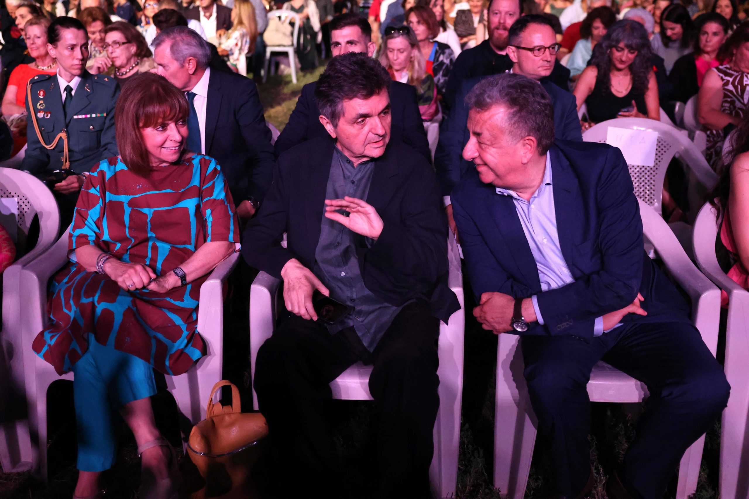 Στην συναυλία αλλά και στα εγκαίνια της έκθεσης, παρόντες παράλληλα με την Πρόεδρο της Δημοκρατίας ήταν: ο Μητροπολίτης Ρεθύμνου κ.κ. Πρόδρομος, ο Περιφερειάρχης Κρήτης Σταύρος Αρναουτάκης, οι Αντιπεριφερειάρχες Μαρία Λιονή Π..Ε Ρεθύμνης, Πολιτισμού Γεωργία Μηλάκη, ο Δήμαρχος Ρεθύμνου Γιώργος Μαρινάκης, Περιφερειακοί – Δημοτικοί σύμβουλοι, ο Γενικός Διευθυντής του Μουσείου Ακρόπολης, καθηγητή Νίκος Σταμπολίδης, η κόρη του Πάμπλο Πικάσο, Παλόμα Πικάσο, η Γενική Διευθύντρια των Μουσείων του Βατικανό Barbara Jatta ενώ παρέστησαν η π. Βασίλισσα της Ισπανίας Σοφία, η αδελφή της Ειρήνη, η πριγκίπισσα Ολύμπια Τορλόνια,  η σύζυγος του πρωθυπουργού Μαρέβα Γκραμπόφκσι – Μητσοτάκη, επιχειρηματίες, καλλιτέχνες, όπως και άλλοι προσκεκλημένοι του κ. Σταμπολίδη από την Ελλάδα και το εξωτερικό.
