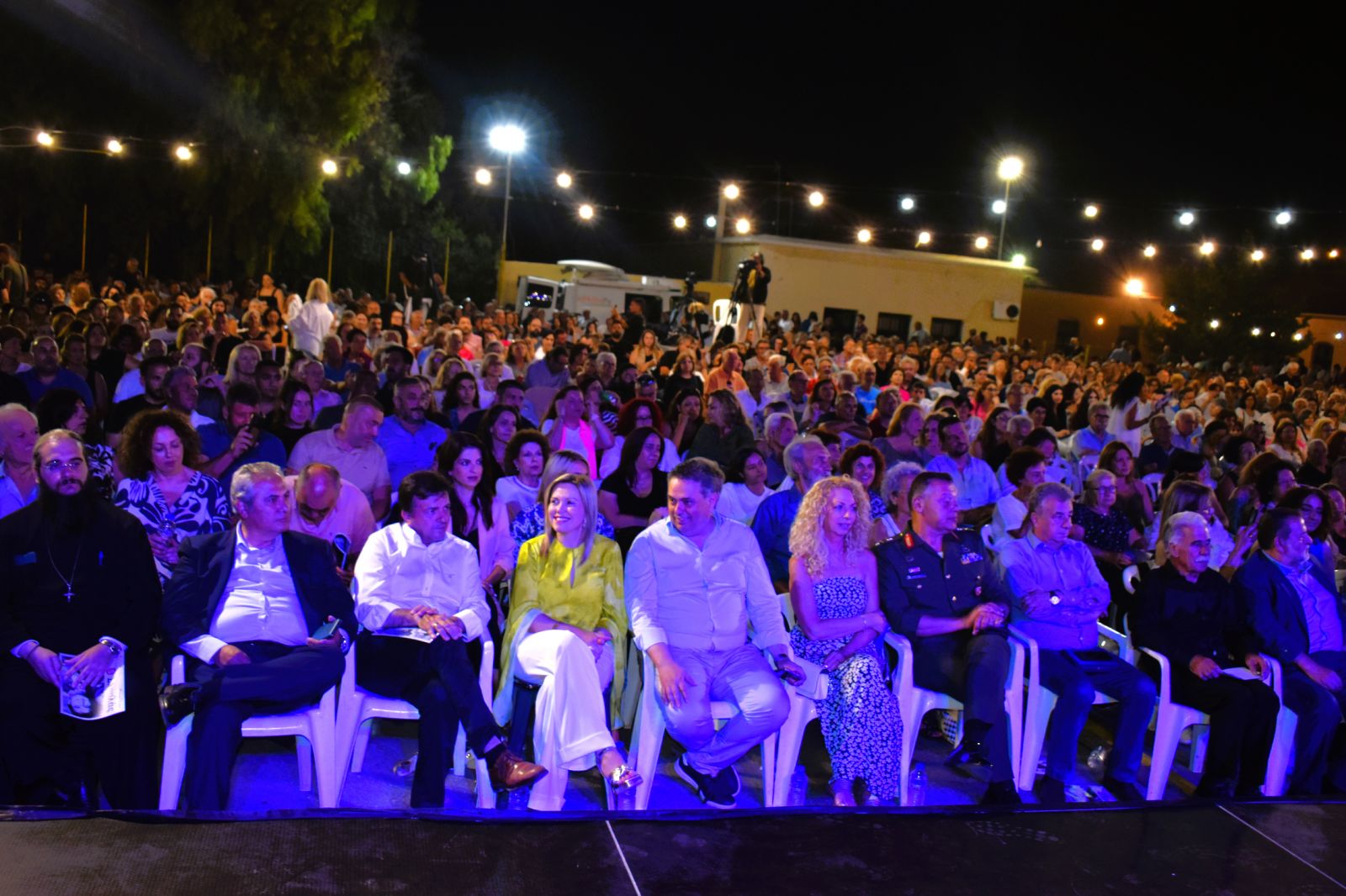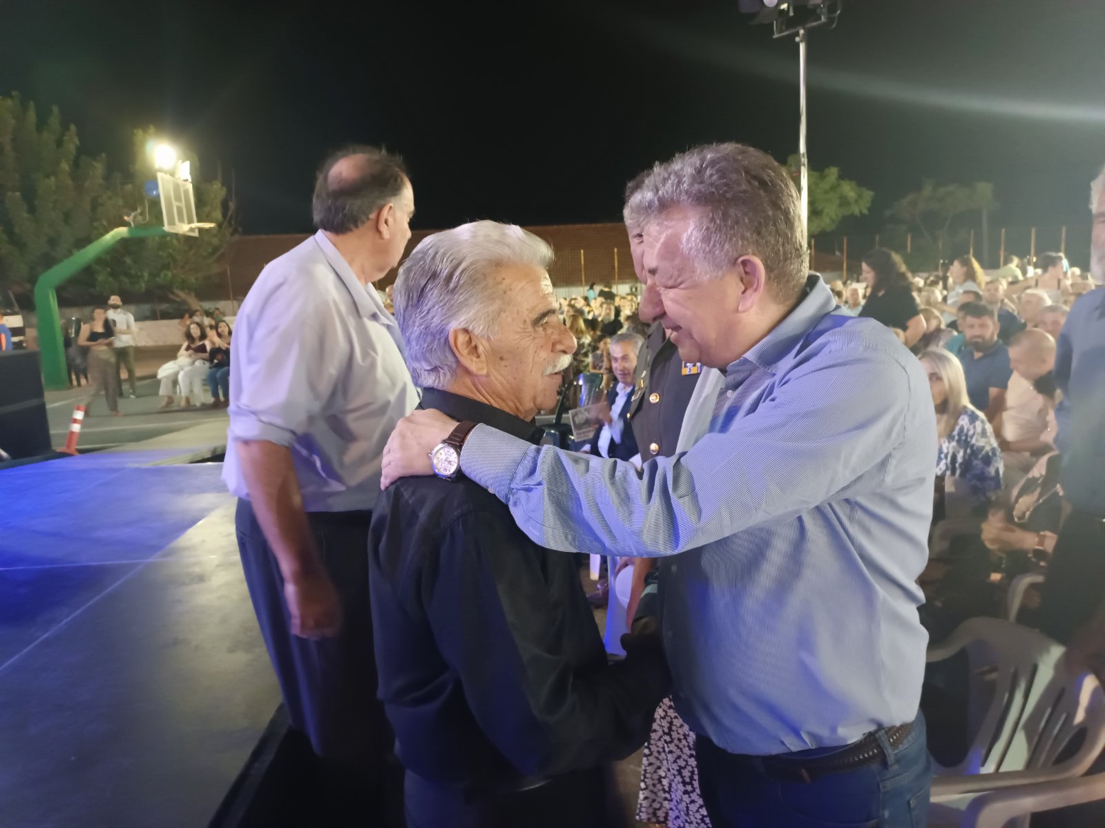 Θερμά χειροκροτήθηκε ο Βασίλης Σκουλάς από όλους, θεσμικούς εκπροσώπους, φορείς, καλλιτέχνες και χιλιάδες πολίτες στην τιμητική βραδιά για τα 65 χρόνια προσφοράς του μεγάλου Κρητικού δημιουργού- καλλιτέχνη που πραγματοποιήθηκε με επιτυχία στον αύλειο χώρο του Γυμνασίου-Λυκείου Καστελλίου του Δήμου Μινώα Πεδιάδας. Ήταν μία ξεχωριστή εκδήλωση που κυριάρχησαν η μουσική, τα τραγούδια, η παράδοση από την Κρήτη μέχρι τον Πόντο και που οργανώθηκε από 18 εν ενεργεία Πολιτιστικούς συλλόγους της δημοτικής Ενότητας Καστελλίου, την Περιφέρεια Κρήτης, τον Δήμο Μινώα Πεδιάδας, το αθλητικό σωματείο «Δωριεύς Καστελλίου», με τη συμμετοχή του Πολιτιστικού συλλόγου Ανωγείων.