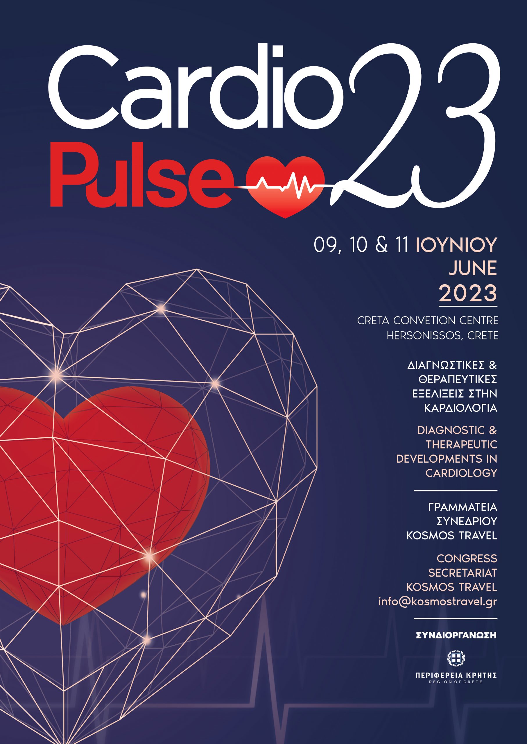 H Καρδιολογική κλινική του Πανεπιστημιακού Γενικού Νοσοκομείου Ηρακλείου Κρήτης σε συνεργασία με τον Παγκύπριο Ιατρικό Σύλλογο διοργανώνει το Cardio Pulse 2023, στις 9-11 Ιουνίου 2023 στην Χερσόνησο Ηρακλείου, με την υποστήριξη της Περιφέρειας Κρήτης.
